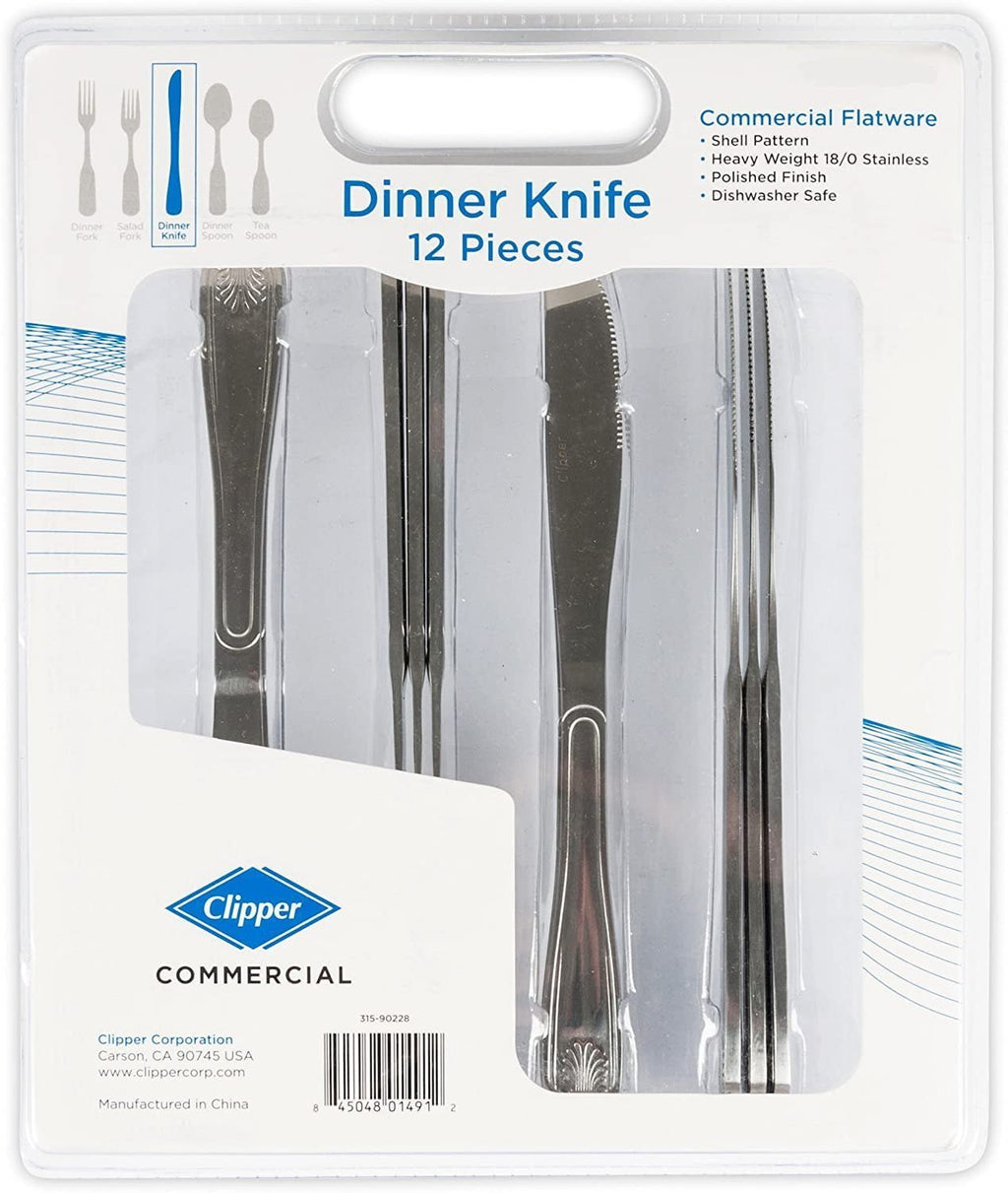 1 DZ Pack - 18/0 Polish Finish, Dinner Knife - Shell Pattern