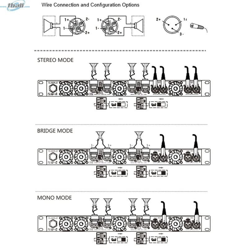 ADMARK AD-430 Amp Pro High Power Audio Class-D Power Amplifier 4 x 5000 Watts @ 4-Ohms Per Channel with Dual Digital Signal LEDs 1 U Rack Mount2 Channel: One balanced XLR(with lock) female - in and one balanced XLR male per channel. * Signal out - connection One SPEAKON per channel connection to loudspeakers. * Power cord: 1.5 meters long. * Multiple - Functions Switch: Two Sensitivity Switches, one Mode Switch and one Clip Switch. * Dimensions: 482x44x380mm / 482x44x470mm * Net weight: 10Kg/12Kg * Packing size: 580x580x119mm / 615x615x119mm * Shipping weight: 12Kg/14KgClass - D high power audio venue amplifier. Ideal for stage or club settings. Sexy and novel appearance. Intelligent soft boot, sophisticated short - circuit, over - load, over - heat protection. Compact steel frame, shockproof, compressive resistance. With built - in low frenquency exciter. Able to work in stereo, parallell and bridge modes. Can work under voltages of 60V to 400VEIAJ Test Standard, 1 kHz, 1% THD: 4 x 3000 Watts @ 8 Ohms; 4 x 5000 Watts @ 4 Ohms; 4 x 7140 Watts @ 2 Ohms; 2 x 10000 Watts 8 Ohms Bridged; 2 x 13000 Watts 4 Ohms Bridged. * 1/8 Maximum Power Output in 4 Ohms: 2857 Watts, 14A 4 Channel; 2857 Watts, 28.2 Amps Bridged. * 1/4 Maximum Power Output in 4 Ohms: 5000 Watts, 23.8 Amps 4 Channel; 5000 Watts, 45.8 Amps Bridged.Alternating Current Power Supply Power: PFC Power * Rated power demand: 100 - 240 V +/ - 10%, 50/60 Hz * Operation voltage: 90V - 270V * Power correction factor cos (f): >0.95 @ >500 W * Standby: 47W and 0.8A * Gain,Sensitivity: 32dB,35dB,38dB,41dB * Maximum Output Voltage/Current: 185V/85A(370V in the BRIDGE MODE) * Power Comsumption: 230V (115V in the BRIDGE MODE) * Operating temperature: 0 Degrees - 45C / 32 Degrees - 113 Degrees FCooling system: Tunnel through cooling system * Frequency Response: 20 Hz - 20 kHz (1 W @ 8 ohms, +/ - 0.5 dB) * Signal - to - Noise Ratio: >110 dBA (20 Hz - 20 kHz, A weighted) * Crosstalk: > 66 dB @ 1 kHz * Input Impedance: 10 k Ohms balanced * Total Harmonic Distortion (THD): <0.5% from 1 W to full power (Typical value<0.05%) <0.5% from 1 W to full power (Typical value<0.05%) * Intermodulation Distortion (IMD): <0.5% from 1 W to full power (Typical value<0.05%)