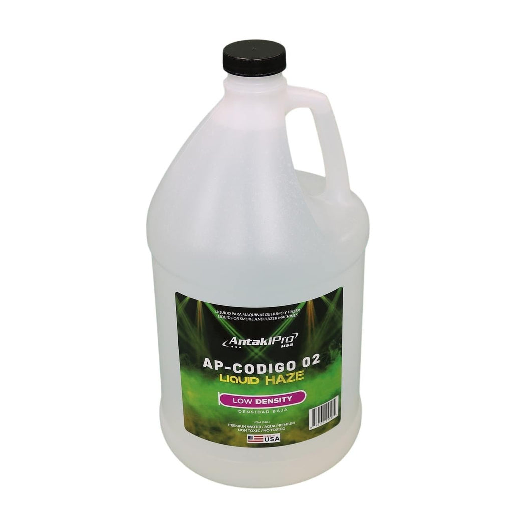 ANTAKIPRO AP-CODIGO2 Moderate Density Fog Liquid Haze Juice Non-Toxic Odorless Water-Based Fog Machine Fluid for All Standard Fog Machines - 1 GallonPremium water-based fog machine fluid - safe and non-toxic - does not contain dipropylene glycol or other potentially hazardous chemicals. enjoy a clean, dry, odorless fog! ||Density fog is perfect for a lighting enhancement that doesn't obscure other visual elements of your environment. ||Tested & rigorously formulated to produce a longer-lasting fog than competitors. Be confident in an excellent hang time and well-dispersed fog. ||Perfect for setting the environment for any number of events or entertaining, including live music, DJ's, parties, clubs, theatrical presentations, church, or haunted houses! ||Suitable for any standard fog machine. Optimized for use in 500W fogger.