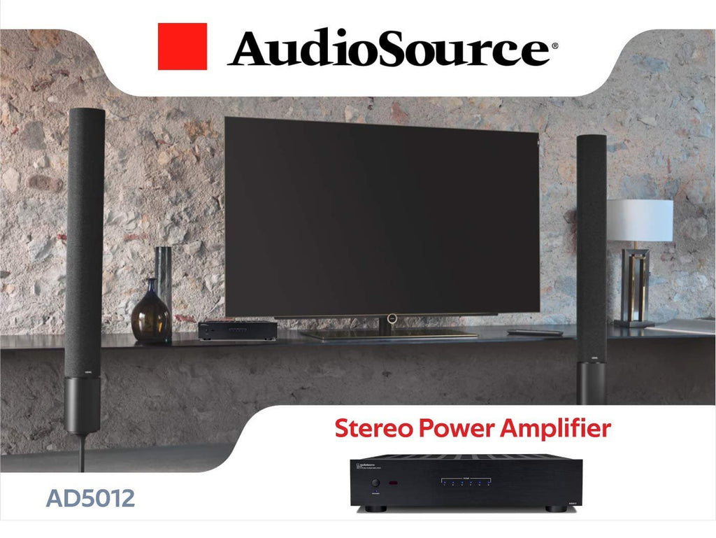 AudioSource Digital Amplifier, 12 Channel Stereo Versatility D Amplifier AD5012 for Home Sound SystemsPOWER YOUR SOUND SYSTEM: 12 channels rated at 50 watts into 8 ohms. 75 watts per channel into 4 ohms. 100 watts x6 bridged mono at 8 ohms. 12 channels (6 stereo zones). 12 independent level controls.HIGHLIGHTS: 2 Line Bus outputs. Independent inputs for all 8 channels. Master level controls for Bus 1 and 2. Phoenix-style speaker connectors. Optical input. Rear mounted treble and bass controls. High efficiency class D topologies. Black anodized brushed aluminum faceplate. Bridgeable outputs. OTP Protection (over temperature protection). OCP Protection (over current protection). LED status indicator lights. Manual, auto, or triggered on/off. Rack mountable (Rack ears included).AUTOMATICALLY STARTS AND STOPS: Program your amplifier any way you prefer with our auto on/off function. You can turn it off and on manually, set it to do so automatically, or create a trigger.PERFECT FOR ANY HOME AUDIO SYSTEM: Our stereo amplifiers are great for home theaters and outdoor systems. Enjoy professional quality audio in the comfort of your own home.SPECIALLY DESIGNED FOR MULTIPLE ROOMS: Our amplifiers allow you to deliver high quality sound and power to multiple rooms for the ultimate surround sound experience.