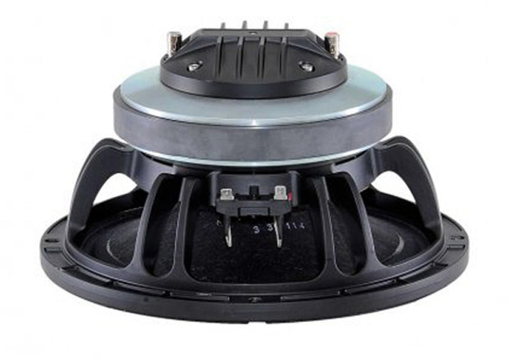 B & C Speakers 10FCX64-8 10-inch Coaxial Speaker with Titanium Diaphragm Material & 250 Watts Rms 500-Watt Max Pro Audio Component Speaker Driver for Motorcycle CarNominal diameter: 250 mm (10.0 in) * Nominal impedance: 8 Ohms * Minimum impedance lf: 6.4 Ohms * Minimum impedance hf: 7.0 Ohms * Frequency range: 65 - 18000 Hz * Dispersion angle: 70 Degrees * Magnet material: CeramicSpecifications LF Unit || LF Sensitivity: 95.0 dB * LF Nominal Power Handling: 250 W * LF Continuous Power Handling: 500 W * LF Voice Coil Diameter: 64 mm (2.5 in) * LF Winding Material: CopperSpecifications HF Unit || * HF Sensitivity: 104.0 dB * HF Nominal Power Handling: 80 W * HF Continuous Power Handling: 160 W * HF Voice Coil Diameter: 65 mm (2.5 in) * HF Winding Material: Aluminium * Diaphragm material: Titanium * Recommended crossover: 1.2 kHzParameters || * Fs: 63 Hz * Re: 5.5 Ohms * Qes: 0.44 * Qms: 7.9 * Qts: 0.42 * Vas: 25.0 dm3 (0.89 ft3) * Sd: 320.0 cm2 (49.1 in2) * no: 1.4 % * Xmax: 5.5 mm * Xvar: 6.0 mm * Mms: 37 g * Bl: 13.4 Txm * Le: 1.2 mH * EBP: 143 HzMounting And Shipping Info || * Overall diameter: 261 mm (10.3 in) * Bolt circle diameter: 245 mm (9.6 in) * Baffle cutout diameter: 230 mm (8.8 in) * Depth: 140 mm (5.51 in) * Flange and gasket thickness: 11 mm (0.43 in) * Net weight: 5.65 kg (12.8 lb) * Shipping units: 1 * Shipping weight: 6.45 kg (14.2 lb) * Shipping box: 365 x 365 x 210 mm (14.4 x 14.4 x 8.3 in) * Service Kit * Service kit lf: RCK10FCX648 * Replacement diaphragm: MMD620TN8M