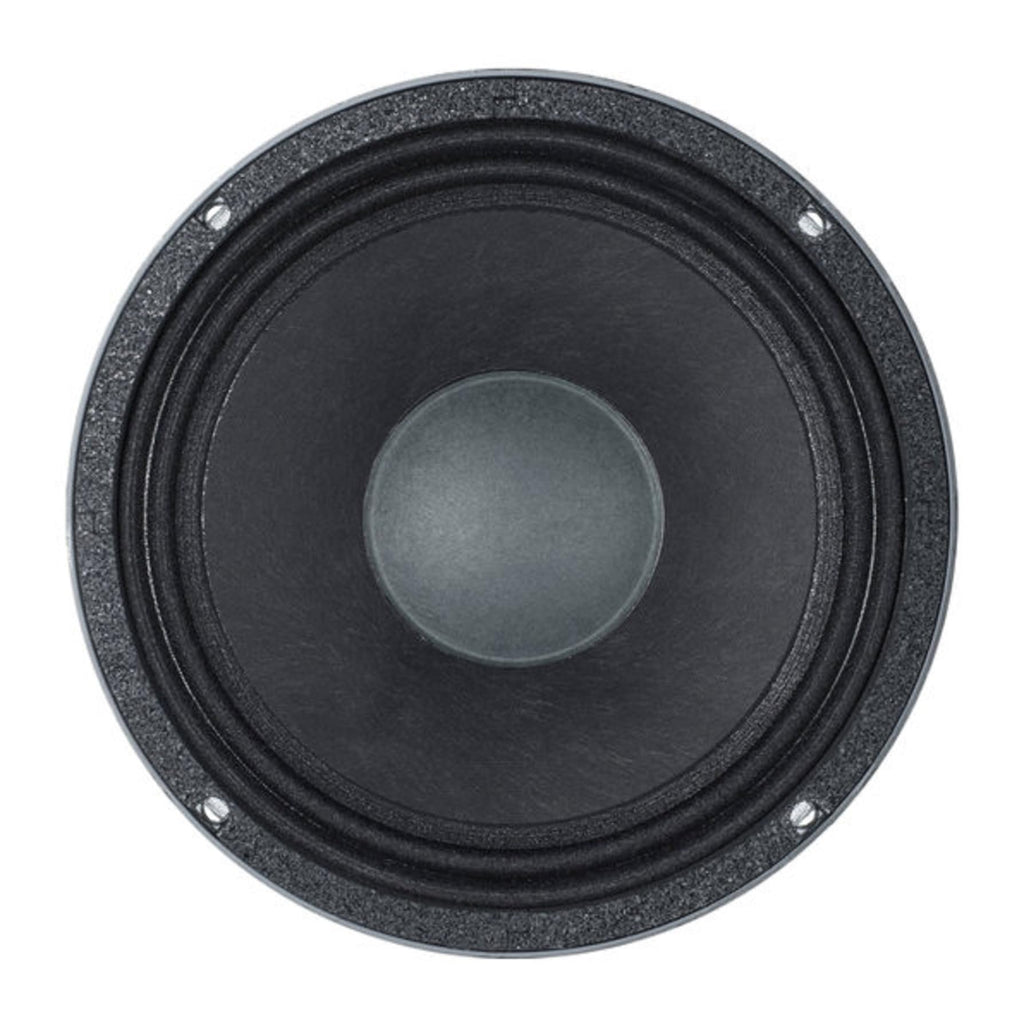 "SPECIFICATIONS || Nominal Diameter : 250 mm (10.0 in) || Nominal Impedance : 8 Ω || Minimum Impedance : 6.2 Ω || Nominal Power Handling1 : 200 W || Continuous power handling2 : 400 W || Sensitivity (1W/1m)3 : 98.5 dB || Frequency Range : 60 - 4000 Hz || Voice Coil Diameter : 64 mm (2.5 in) || Winding Material : Aluminium || Former Material : Glass Fibre || Winding Depth : 12.0 mm (0.47 in) || Magnetic Gap Depth : 8.0 mm (0.31 in) || Flux Density : 1.25 T || "