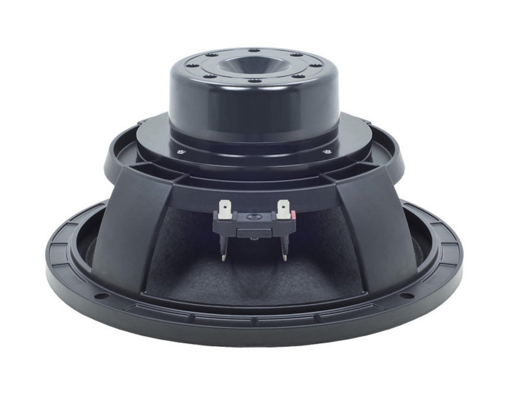 B&C Speakers 10MBX64-8 10-inch Mid Bass Woofer 8 Ohms Pro Audio Component Speaker Driver for Motorcycle Car 350 Watts Rms 700 Watts Max with Neodymium Inside SlugBC B & C 10" Mid Bass, 10MBX64 || 700 W continuous program power capacity || 64 mm (2.5 in) aluminium voice coil || 65 - 6000 Hz response || 100 dB sensitivity || Neodymium inside slug magnet assembly || Aluminium demodulating ring allows a very low || distortion figure || Ventilated voice coil gap for reduced power || compression"Specifications || Nominal Diameter : 250 mm (10.0 in) || Nominal Impedance : 8 Ω || Minimum Impedance : 6.5 Ω || Nominal Power Handling 1 : 350 W || Continuous power handling 2 : 700 W || ""Specifications || Sensitivity (1W/1m) 3 : 100.0 dB || Frequency Range : 65 - 6000 Hz || Voice Coil Diameter : 64 mm (2.5 in) || Winding Material : Aluminium || Former Material : Glass Fibre || Winding Depth : 12.0 mm (0.47 in) || Magnetic Gap Depth : 8.0 mm (0.31 in) || Flux Density : 1.25 T"The MBX series mid-bass woofers from B&C Speakers offer acoustic designers a new range of high efficiency, wide bandwidth alternatives that are not currently available in the B&C range.These full-featured transducers incorporate lightweight neodymium motors, inside/outside wound copper clad aluminum wire voice coils, weatherproof impregnated paper cones, and a symmetrical inductance profile. The MBX Series is especially well suited for two-way loudspeaker enclosures.