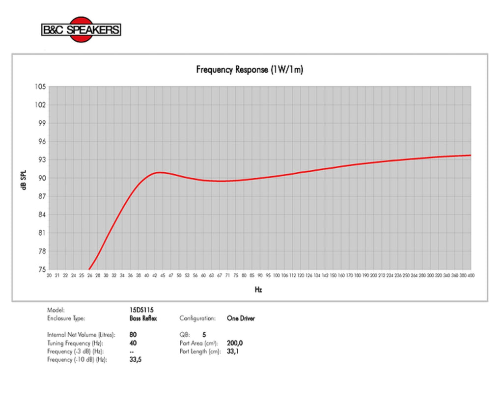 "B&C Speakers 15DS115-4 LF Drivers 15-inch 4 Ohms Impedance 1600 Watts Rms 3200 Watts Max Neodymium Pro Audio Component Speaker Driver for Motorcycle Car || HIGHLIGHTS 3200 W continuous program power capacity | 116 mm (4.5 in) four layer aluminum voice coil | 35 - 1000 Hz response | 96 dB sensitivity | 60 mm peak-to-peak excursion before damage | Neodymium magnet allows a very high force factor and linear excursion | Double silicone spider with optimized compliance | Ventilated voice coil gap for reduced power compression | Aluminium demodulating ring for very low distortion | || SPECIFICATIONS Nominal Diameter : 380 mm (15.0 in) | Nominal Impedance : 4 Ω | Minimum Impedance : 4.8 Ω | Nominal Power Handling1 : 1600 W | Continuous power handling2 : 3200 W | Sensitivity (1W/1m)3 : 96.0 dB | Frequency Range : 35 - 1000 Hz | Voice Coil Diameter : 116 mm (4.5 in) | Winding Material : Aluminium | Former Material : Glass Fibre | Winding Depth : 40.0 mm (1.57 in) | Magnetic Gap Depth : 14.0 mm (0.55 in) | Flux Density : 0.8 T | || DESIGN : | Surround Shape : Triple Roll | Cone Shape : Radial | Magnet Material : Neodymium Inside Slug | Spider : Double Silicone | Pole Design : T-Pole | Woofer Cone Treatment : TWP Waterproof Both Sides | Recommended Enclosure : 80.0 dm3 (2.83 ft3) | Recommended Tuning : 40 Hz | || MOUNTING AND SHIPPING INFO || Overall Diameter : 393 mm (15.47 in) | Bolt Circle Diameter : 375 mm (14.76 in) | Baffle Cutout Diameter : 354.0 mm (13.94 in) | Depth : 199 mm (7.83 in) | Flange and Gasket Thickness : 15 mm (0.59 in) | Air Volume Occupied by Driver : 7.0 dm3 (0.25 ft3) | Net Weight : 11.6 kg (25.57 lb) | Shipping Units : 1 | Shipping Weight : 12.9 kg (28.44 lb) | Shipping Box : 425x425x224 mm (16.73x16.73x8.82 in) | || This next evolution subwoofer uses a new, longer, four layer aluminum voice coil. The result is more energy in the gap, higher sensitivity, lower distortion and better overall performance. The 15DS115 features a 40mm long, 4.5 inch diameter (116mm) Copper Clad Aluminum Wire voice coil. With a 1600watt AES power rating, 96 dB sensitivity, and over 14 mm of Xvar, this high energy subwoofer is a significant step forward from similar models in the B&C range.", 15DS115, 697478495225, ALT15DS1154M"HIGHLIGHTS 3200 W continuous program power capacity | 116 mm (4.5 in) four layer aluminum voice coil | 35 - 1000 Hz response | 96 dB sensitivity | 60 mm peak-to-peak excursion before damage | Neodymium magnet allows a very high force factor and linear excursion | Double silicone spider with optimized compliance | Ventilated voice coil gap for reduced power compression | Aluminium demodulating ring for very low distortion | ""SPECIFICATIONS Nominal Diameter : 380 mm (15.0 in) | Nominal Impedance : 4 Ω | Minimum Impedance : 4.8 Ω | Nominal Power Handling1 : 1600 W | Continuous power handling2 : 3200 W | Sensitivity (1W/1m)3 : 96.0 dB | Frequency Range : 35 - 1000 Hz | Voice Coil Diameter : 116 mm (4.5 in) | Winding Material : Aluminium | Former Material : Glass Fibre | Winding Depth : 40.0 mm (1.57 in) | Magnetic Gap Depth : 14.0 mm (0.55 in) | Flux Density : 0.8 T | ""DESIGN : | Surround Shape : Triple Roll | Cone Shape : Radial | Magnet Material : Neodymium Inside Slug | Spider : Double Silicone | Pole Design : T-Pole | Woofer Cone Treatment : TWP Waterproof Both Sides | Recommended Enclosure : 80.0 dm3 (2.83 ft3) | Recommended Tuning : 40 Hz | ""MOUNTING AND SHIPPING INFO || Overall Diameter : 393 mm (15.47 in) | Bolt Circle Diameter : 375 mm (14.76 in) | Baffle Cutout Diameter : 354.0 mm (13.94 in) | Depth : 199 mm (7.83 in) | Flange and Gasket Thickness : 15 mm (0.59 in) | Air Volume Occupied by Driver : 7.0 dm3 (0.25 ft3) | Net Weight : 11.6 kg (25.57 lb) | Shipping Units : 1 | Shipping Weight : 12.9 kg (28.44 lb) | Shipping Box : 425x425x224 mm (16.73x16.73x8.82 in) | ""MOUNTING AND SHIPPING INFO || Overall Diameter : 393 mm (15.47 in) | Bolt Circle Diameter : 375 mm (14.76 in) | Baffle Cutout Diameter : 354.0 mm (13.94 in) | Depth : 199 mm (7.83 in) | Flange and Gasket Thickness : 15 mm (0.59 in) | Air Volume Occupied by Driver : 7.0 dm3 (0.25 ft3) | Net Weight : 11.6 kg (25.57 lb) | Shipping Units : 1 | Shipping Weight : 12.9 kg (28.44 lb) | Shipping Box : 425x425x224 mm (16.73x16.73x8.82 in) | "