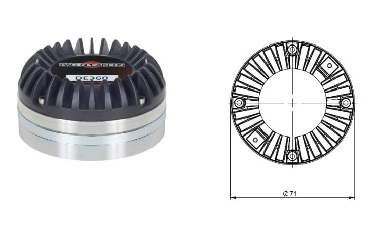 As the newest ring radiator offering from B&C speakers, the DE360 features a ketone polymer diaphragm with a neodymium magnet motor. Extensive FEA modeling and physical testing over the last several years has culminated in these 1.5 inch (38mm) coil ring drivers with outstanding sensitivity, high frequency extension, and compactness.
