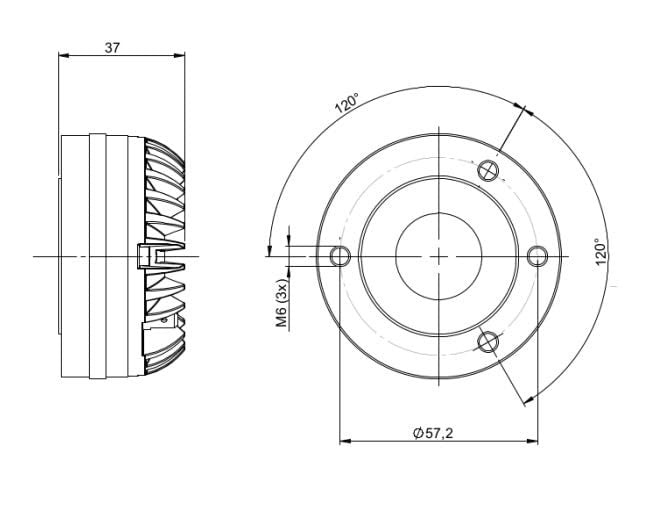 "SPECIFICATIONS || Throat Diameter : 25 mm (1 in) || Minimum Impedance : 7.6 Ω || Continuous Power Handling : 70 W || Frequency Range : 1.2 - 20 kHz || Voice Coil Diameter : 38 mm (1.5 in) || Inductance : 0.12 mH || Magnet Material : Neodymium Ring || Nominal Impedance : 8 Ω || Nominal Power Handling : 35 W || Sensitivity : 110 dB || Recommended Crossover : 1.8 kHz || Winding Material : Aluminium || Diaphragm Material : HT Polymer || Flux Density : 2 T || "
