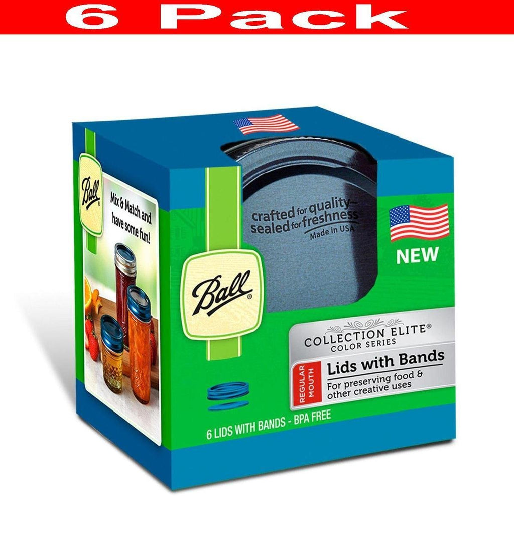 Ball Regular Blue Mouth Lids with Bands, 6 Count