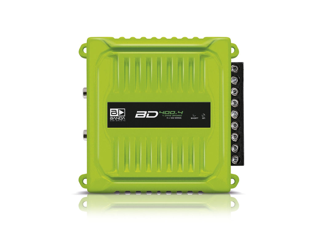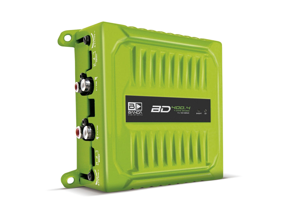 Banda Audioparts BD400.4GREEN Four Channel 4 x 100 Watt Rms Full Range Car Audio Amplfier 4 Ohms Bridged with Optional Use Low or High Pass Filters Green