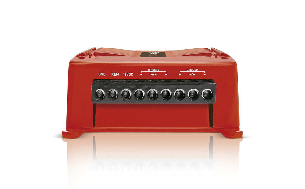 Banda Audioparts BD400.4RED Four Channel 4 x 100 Watt Rms Full Range Car Audio Amplfier 4 Ohms Bridged with Optional Use Low or High Pass Filters Red"SPECIFICATIONS :: Total Power 14,4 @ 2 Ohms : 4 x 100 WRMS | Total Power 14,4 @ 4 Ohms : 4 x 70 WRMS | Total Power 14,4 Bridged @ 2-4 Ohms : 2 x 200 WRMS | Efficiency @ 4 Ohms : 0.84 | Efficiency @ 2 Ohms : 0.77 | Input Voltage : 9 – 15V | Input Impedance : 22K Ohms | THD+Noise : 0,10% | ""SPECIFICATIONS :: THD+Noise : 0,10% | Input Sensitivity : 140mV – 680V | SNR : 85dB | Frequency Response : 5 to 22KHz (-3dBs) | HPF (High Pass Filter) : 20 to 90Hz @ 12dB/octave Linkwitz-Riley | LPF (Low Pass Filter) : 90 to 20kHz @ 12dB/octave Linkwitz-Riley | Recommended Fuse : 30 A | Current at Rest : 1 A | Average Current Draw (Sinusoidal) : 30 A | Average Current Draw (Music) : 20 A | Power Wire Gauge (min. Recommended) : 6mm / 9 AWG | ""SPECIFICATIONS :: SPEAKER WIRE GAUGE (MIN. RECOMMENDED) Weight (Lb) : 1,8 | Height (in) : 1,6 | Width (in) : 4,8 | Depth (in) : 8,0 | "Class D operation provides exceptional power and efficiency, allowing the amplifier to deliver up to 400 WRMS of maximum power across four channels || Active crossover per key and band pass capabilities provide advanced control over the frequency response, allowing you to fine-tune the sound to your specific needs ||With a frequency response range of 20Hz to 20kHz and THD of less than 1%, this amplifier produces crystal-clear, distortion-free sound across the entire audible spectrum || Compact and lightweight at only 1.72 lbs and with a height of 4.57 inches, width of 5 inches, and depth of 2.09 inches, this amplifier is perfect for use in tight spaces or on-the-go applications such as car or motorcycle audio systems.