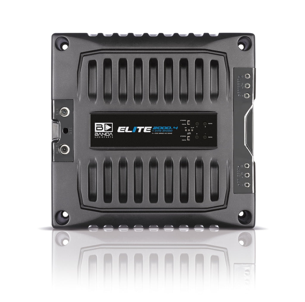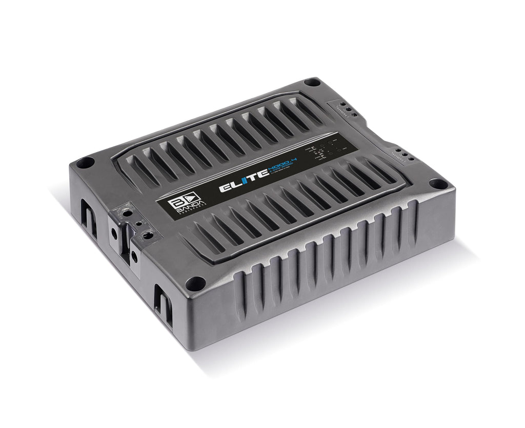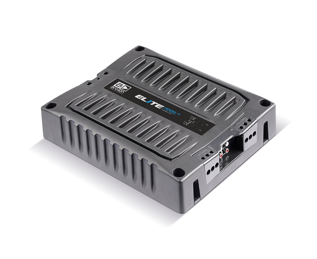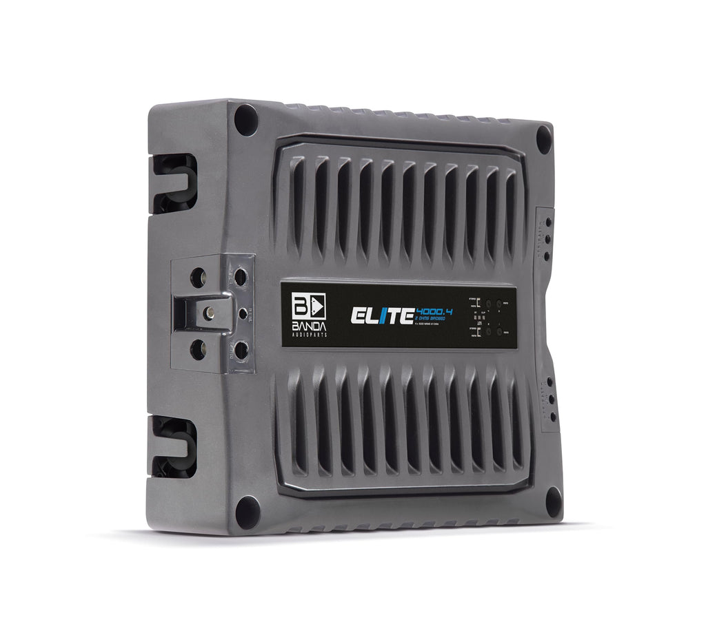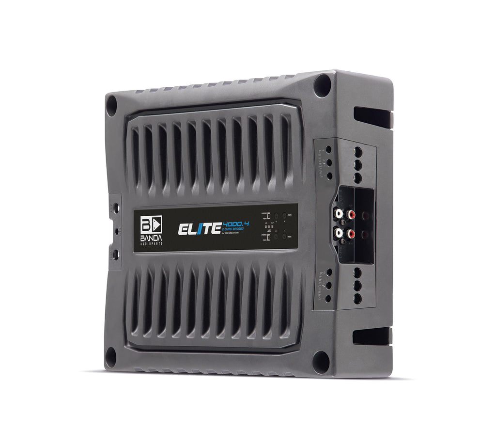 BANDA Audioparts ELITE4000.41OHM 4-Channel 1000 Watts Max @ 1 Ohm Car Audio Amplifier with Highpass Filter and Low Pass Filter, Black - 4000.41OHMGENERAL || Brand : Banda Audioparts || Model Number : 4000.41OHM | ELITE4000.41OHM || UPC : 7898713131820 || ITEM DIMENSIONS || Weight (Lb) : 11.2 || Height (in) : 2.4 || Width (in) : 10.6 || Depth (in) : 12.3 ||POWER SUPPLY : Class D amplifier || Total Power 14.4 @ 1 Ohm : 4x1200 WRMS || Total Power 14.4 @ 2 Ohms : 4x800 WRMS || Total Power 14.4 Bridged @ 4 Ohms : 2x2400 WRMS || Total Power 12.6 @ 2 Ohms : 4 x 1000 WRMS || Total Power 12.6 @ 4 Ohms : 4 x 650 WRMS || Total Power 12.6 Bridged @ 4 Ohms : 2 x 2000 WRMS || Efficiency @ 2 Ohms : 87% || Efficiency @ 1 Ohm : 77% ||"MONO BASS AMPLIFIER INDICATORS || Blue LED : source and powered amplifier indicator || Red LED : output distortion (clipping), Constant - output short circuit indicator || Yellow LED: low voltage battery, Constant - Fuse blown or missing || POWER OUTPUT AND IMPEDANCE || Input Voltage : 9 to 15V || Input Impedance : 100K Ohms || THD+Noise : 0,10% || Input Sensitivity : 150mV to 4V || Signal to Noise Ratio: 88dB || "SOUND SPECIALIZATION: This high-powered Power Amplifier is cutting-edge technology at its finest. RCA connectors ensure a secure connection between amplifier and speakers that allow distortion-free sound ||"OTHER TECHNICAL SPECIFICATIONS || Frequency Response : 5 to 22KHz (-3dBs) || HPF (High Pass Filter) : 20 to 90Hz @ 12dB/octave Linkwitz-Riley || LPF (Low Pass Filter) : 90 to 20kHz @ 12dB/octave Linkwitz-Riley || Recommended Fuse : 200 A || Current at Rest : 1 A || Average Current Draw (Sinusoidal) : 420 A || Average Current Draw (Music) : 210 A || Power Wire Gauge (min. Recommended) : 35mm / 2 AWG || Speaker Wire Gauge (min. Recommended) : 2 x 4mm / 2 x 11 AWG"