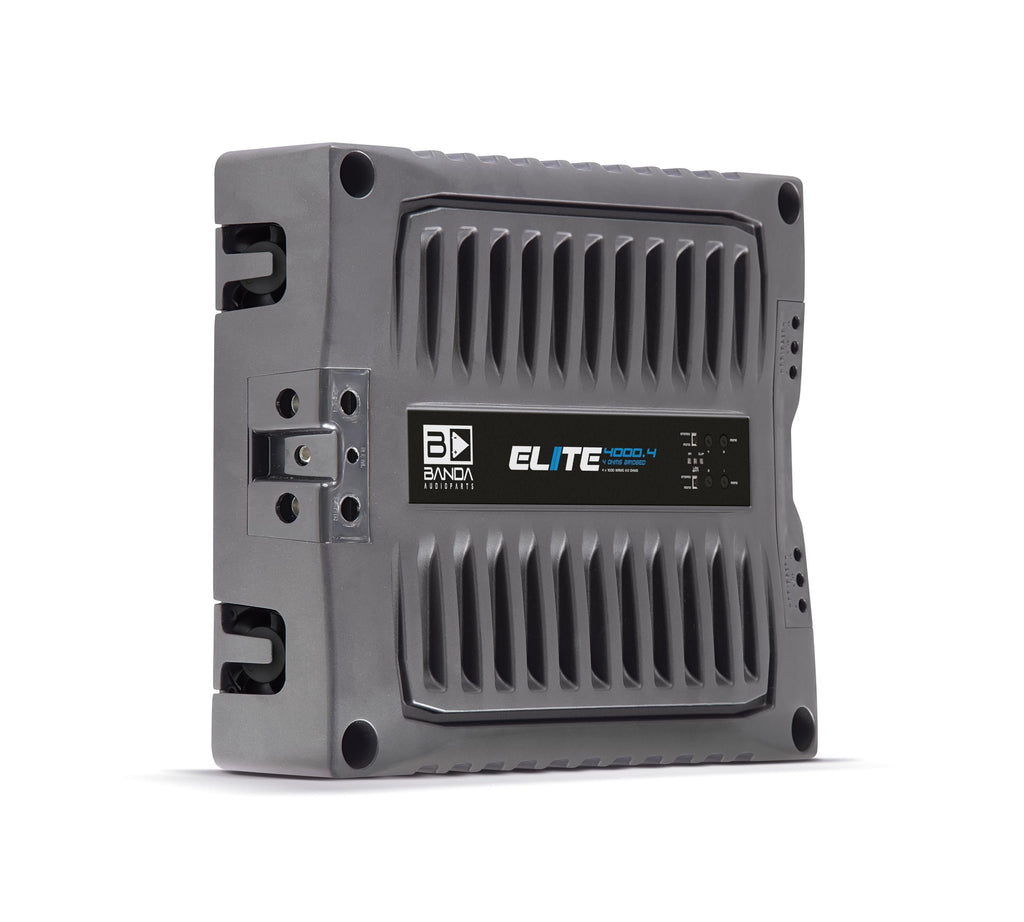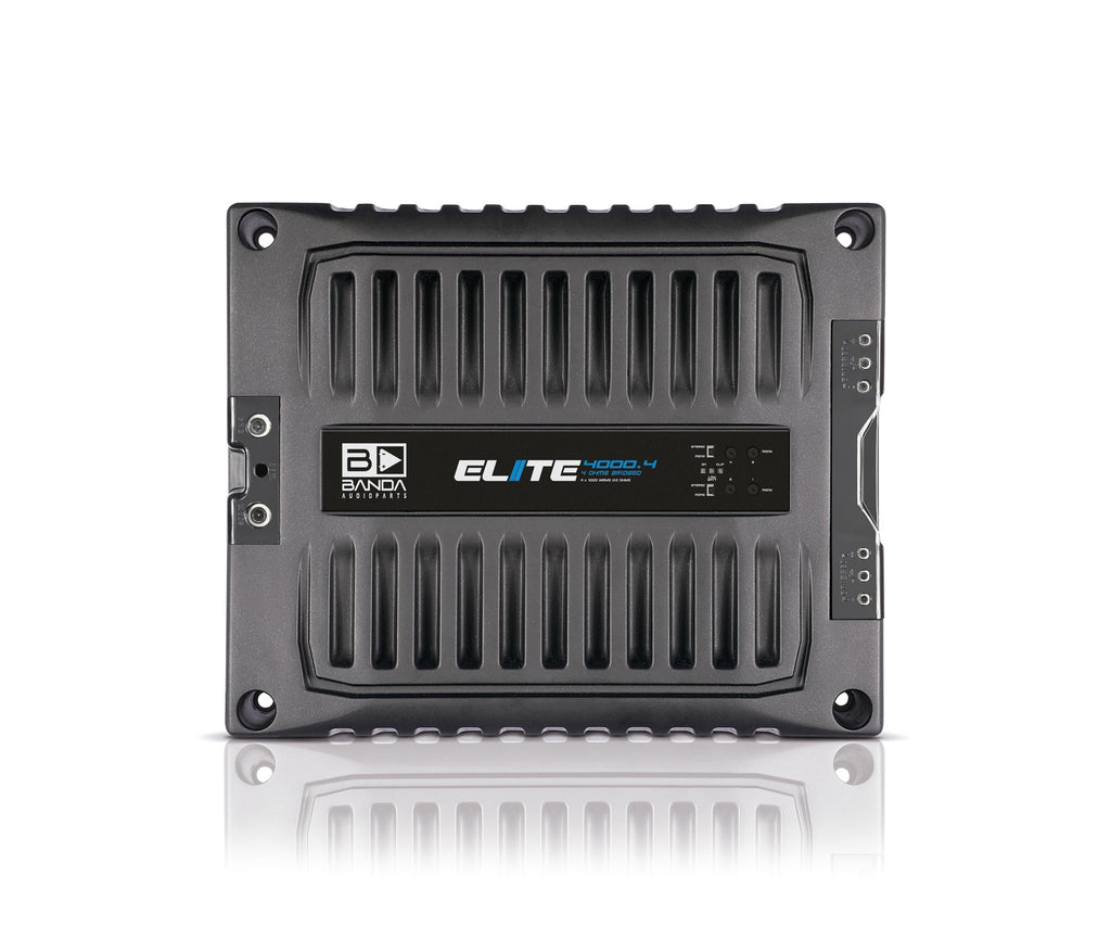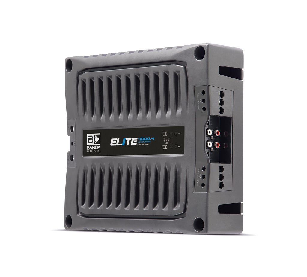 BANDA Audioparts ELITE4000.42OHMS 4-Channel 1000 Watts Max @ 2 Ohm Car Audio Amplifier with Highpass Filter and Low Pass Filter, Black - 4000.42OHM"GENERAL || Brand : Banda Audioparts || Model Number : 4000.42OHM | ELITE4000.42OHMS || UPC : 7898713131837 || ITEM DIMENSIONS || Weight (Lb) : 11.2 || Height (in) : 2.4 || Width (in) : 10.6 || Depth (in) : 12.3 ||POWER SUPPLY : Class D amplifier || Total Power 14.4 @ 2 Ohm : 4x1200 WRMS || Total Power 14.4 @ 4 Ohms : 4x800 WRMS || Total Power 14.4 Bridged @ 4 Ohms : 2x2400 WRMS || Total Power 12.6 @ 2 Ohms : 4 x 1000 WRMS || Total Power 12.6 @ 4 Ohms : 4 x 650 WRMS || Total Power 12.6 Bridged @ 4 Ohms : 2 x 2000 WRMS || Efficiency @ 2 Ohms : 82% || Efficiency @ 4 Ohm : 92% ||"BASS AMPLIFIER INDICATORS || Blue LED : source and powered amplifier indicator || Red LED : output distortion (clipping), Constant - output short circuit indicator || Yellow LED: low voltage battery, Constant - Fuse blown or missing || POWER OUTPUT AND IMPEDANCE || Input Voltage : 9 to 15V || Input Impedance : 100K Ohms || THD+Noise : 0,10% || Input Sensitivity : 150mV to 4V || Signal to Noise Ratio: 88dB || "SOUND SPECIALIZATION: This high-powered Power Amplifier is cutting-edge technology at its finest. RCA connectors ensure a secure connection between amplifier and speakers that allow distortion-free sound ||"OTHER TECHNICAL SPECIFICATIONS || Frequency Response : 5 to 22KHz (-3dBs) || HPF (High Pass Filter) : 20 to 90Hz @ 12dB/octave Linkwitz-Riley || LPF (Low Pass Filter) : 90 to 20kHz @ 12dB/octave Linkwitz-Riley || Recommended Fuse : 200 A || Current at Rest : 1 A || Average Current Draw (Sinusoidal) : 420 A || Average Current Draw (Music) : 210 A || Power Wire Gauge (min. Recommended) : 35mm / 2 AWG || Speaker Wire Gauge (min. Recommended) : 2 x 4mm / 2 x 11 AWG"