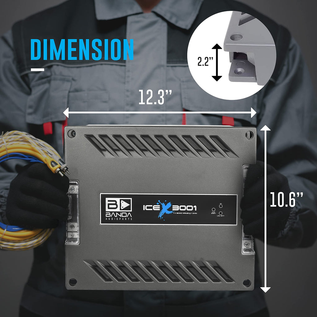 Banda Ice X 3001-1 Channel 3000 Watts RMS 1 Ohm Car AmplifierBrand Name: BandaModel Number: ICE X 3001Item length: 1.0 inchesItem width: 1.0 inches