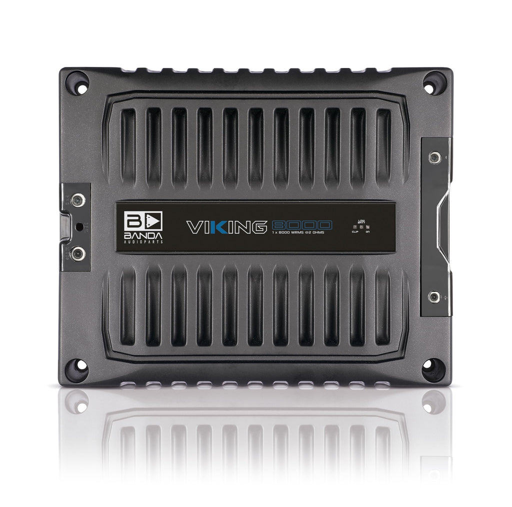 Banda VIK8000.2BK Car Amplifier Audio Speaker 2-Ohms Full Range New Viking 8000 Watts Rms LED Indicator Sound Specialization Aluminum Chassis - BlackGENERAL || Brand : BANDA || Model Number : VIK8000.2BK | VIKING 8000 || UPC : 7898953356557 || TECHNICAL SPECIFICATIONS || Maximum Power at 12.6V @ 2 Ohm : 8000 Watts RMS || Maximum Power at 12.6V @ 4 Ohms : 5100 Watts RMS || Maximum Power at 14.4V @ 2 Ohm : 9000 Watts RMS || Maximum Power at 14.4V @ 4 Ohms : 6800 Watts RMS || Weight (Kg) : 6.3 | 13.9 lbs || Height (cm) : 7.3 | 2.8 (in) || Width (cm) : 25.6 | 10 (in) || Depth (cm) : 31.7 | 12.5 (in) ||TECHNICAL SPECIFICATIONS || Operating Class: Class D || Efficiency @ 4 Ohms : 88% || Efficiency @ 2 Ohm : 79% || Input Voltage : 9 - 15V || Input Impedance : 100K Ohms || Total Harmonic Distortion + Noise : ~3% || Input Sensitivity : 200mV to 8V || Signal-to-Noise Ratio : 80dB || Frequency Response: 16 to 16kHz (-3dB) || High-Pass Filter (Subsonic) : 16 - 120Hz @ 12dB/octave Linkwitz-Riley || Low-Pass Crossover : 50 - 16kHz @ 12dB/octave Linkwitz-Riley ||TECHNICAL SPECIFICATIONS || Variable Bass Boost : 30 - 80Hz with up to 12dB boost || Recommended Fuse : 2 x 225A || Standby Current Draw : ~3A || Maximum Current Draw (Musical Signal) : 400A || Sinusoidal Current : 850A || Minimum Recommended Power Cable : 70mm / 0 AWG || Minimum Recommended Output Cable : 2 x 6mm / 2 x 3 AWG || Gain Control || Differential Input Signal || Forced Ventilation with Micro Fans ||The VIKING line is tailored for those seeking potent and powerful sound. In this line, you will find models that have garnered recognition in top-tier international competitions. || The Viking 8000 delivers an impressive 8000Wrms in a single channel at 2 Ohms, making it a preferred choice for large-scale projects due to its high-performance capabilities. It features a wide frequency response ranging from 16Hz to 16kHz, making it adaptable for driving various types of speakers. ||Crafted with a 100% aluminum chassis, the Viking 8000 offers superior heat dissipation, resulting in lower battery consumption and exceptional performance.