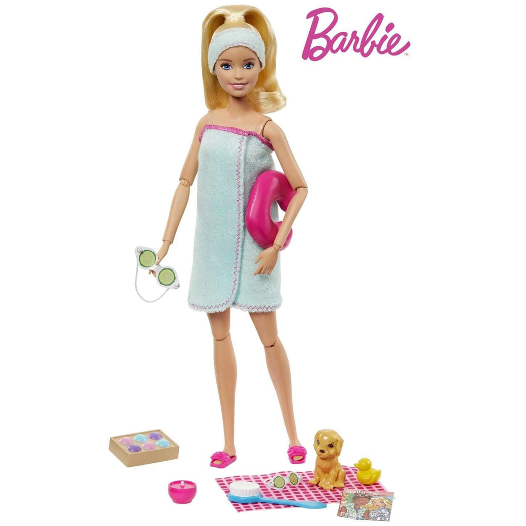 - Kids can practice self-care as they help Barbie doll recharge with this spa-themed set that includes a doll, a puppy and 9 accessories themed to a favorite experience!
