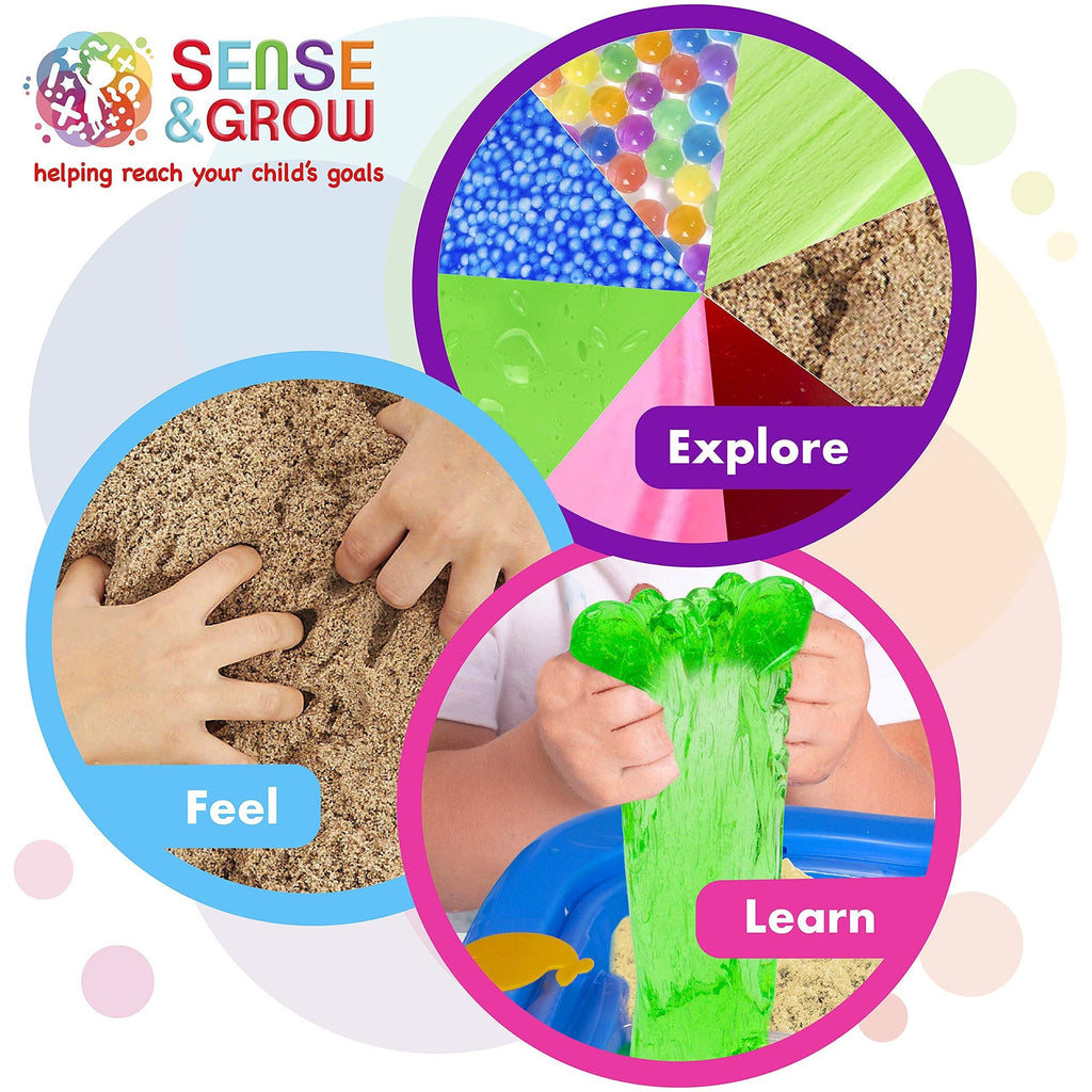 - Treat Your Senses: Develop coordination, exploration and color recognition with the Sense & Grow Products; Improve hand-eye coordination, dexterity and fine motor skills as you explore the sense of touch with sand, stretch sand, slime, modeling clay, water beads and play foam
