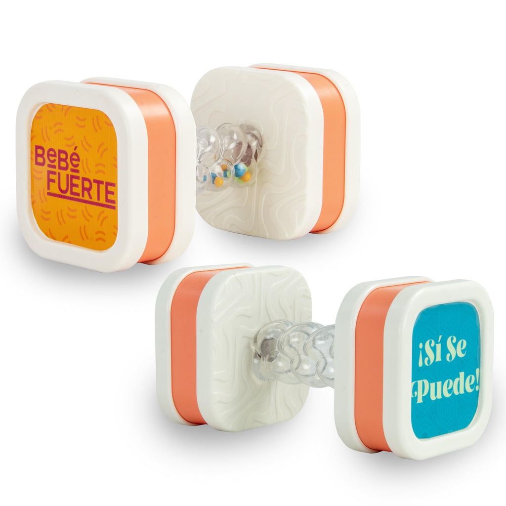 BEBE FUERTE Twist & Shake Dumbbell by Robin Arzon - Bilingual Toddler Sensory Toys - Baby Workout Toys - Baby and Toddler Gifts for Ages 3 Months and UpKids Exercise Equipment: This Montessori baby toy lets your child join the workout fun with a play dumbbell toy designed with unique and fun sounds to get them excited about exerciseBaby Sensory Toys: The Twist and Shake dumbbell is designed with colorful beads in the dumbbell's handle that create a delightful rattle sound as your baby shakes it to their heart's contentTwist and Turn: Let them explore the world of exercise with a sensory-minded design that allows each end of the dumbbell to be twisted for an engaging ratchet soundBilingual Kids Learning Toys: The motivational message of "Si Se Puede" (Yes You Can) on the side encourages movement and is a fun way to bring bilingual learning to baby's playtimeJoyful Movement: Created by Robin Arzόn, VP of Fitness Programming and Head Instructor at Peloton! Arzόn leans into Cuban-Puerto Rican roots and ensures that each baby toy comes in bilingual packaging