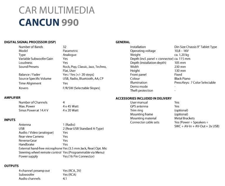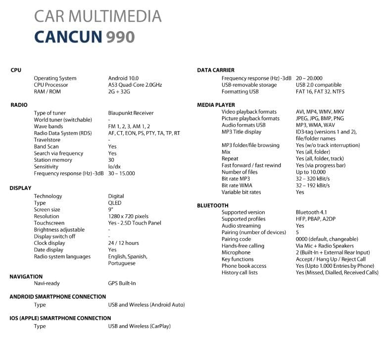 BLAUPUNKT CANCUN990 9-inch QLED 2.5D Touch Screen Panel Car Multimedia Receiver A53 Quad Core 2.0GHz Processor Supports Apple CarPlay Android Built-in WiFi Bluetooth GPS Navigation Capabilities