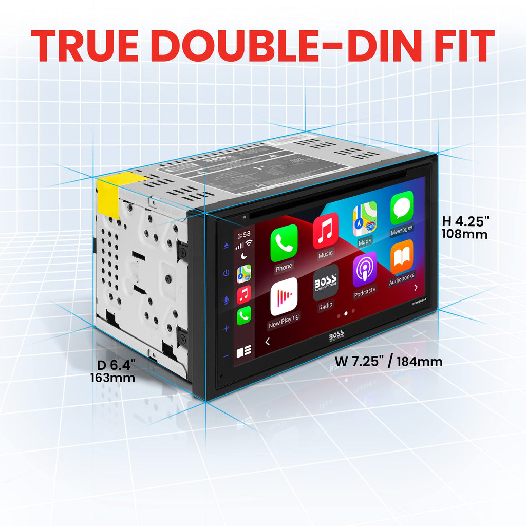BOSS Audio Systems BVCP9690A Car Stereo - Apple CarPlay, Android Auto, Double Din, 6.75 Inch Touchscreen, Bluetooth, CD DVD Player, AM/FM Radio Receiver, Wireless Remote Control, USB
