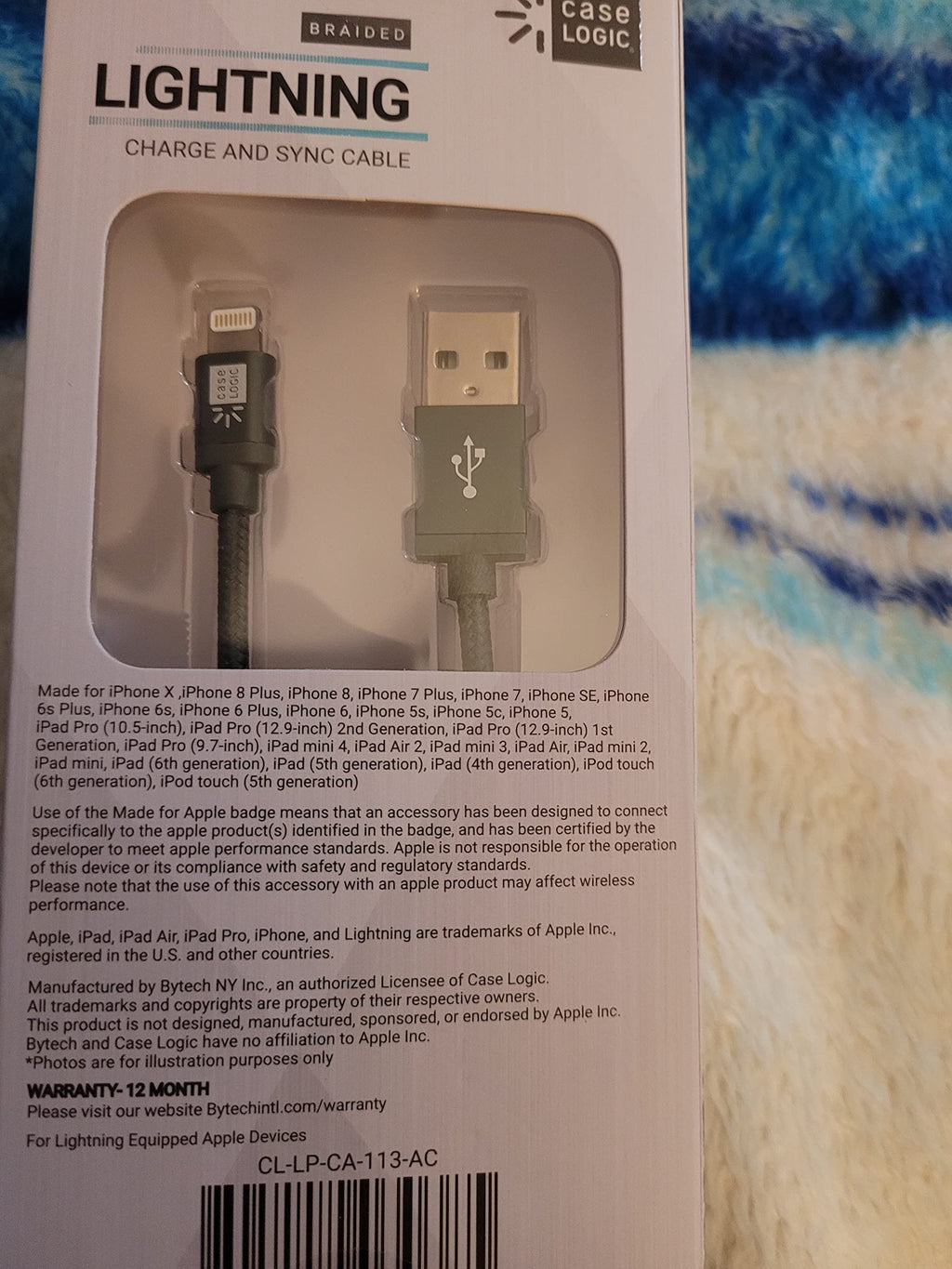 BYTECH CLLPCA113AC BYTECH 10" MFI LTG Cable Fabric-ASST