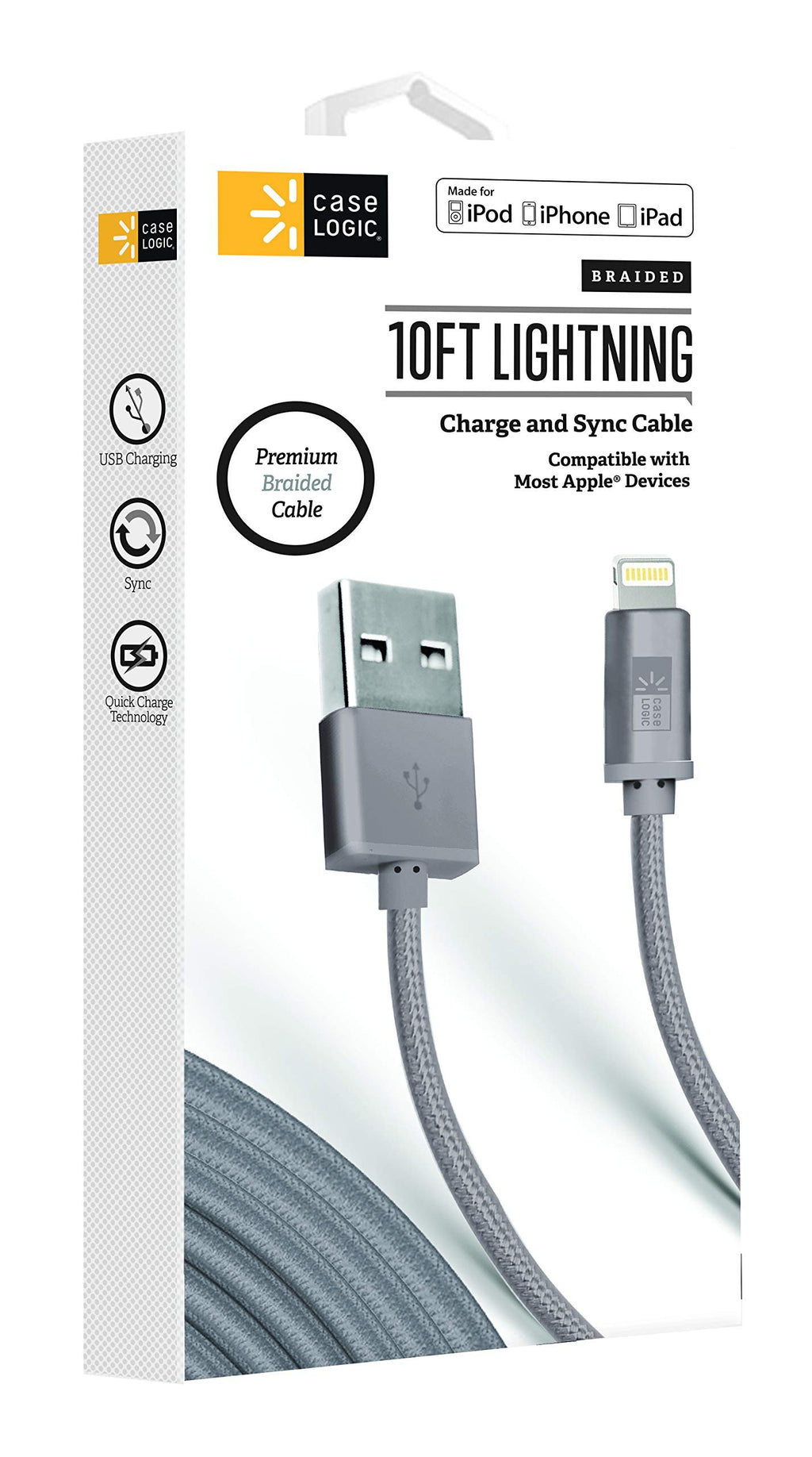 Case Logic BYTECH 10" MFI LTG Cable Fabric-GY,Grey,CL-LP-CA-113-GY
