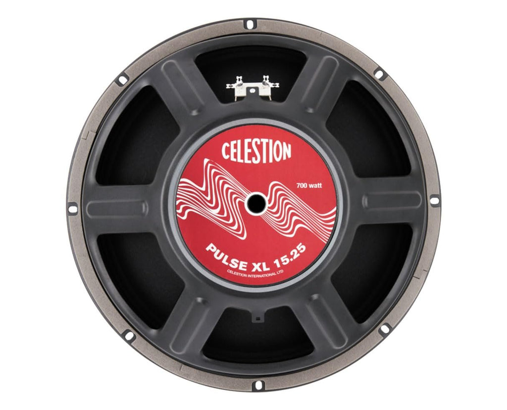 CELESTION T6660 Pulse XL 15.25 Bass Guitar 15-inch Driver Steel-Chassis Guitar Speaker 700 Watt 8-Ohm Defined Midrange Smooth Treble ResponseGENERAL || Brand : CELESTION || Model Number : T6660 | PulseXL15 | PULSE XL 15.25 || UPC : 739894665650 || Plenty of clean, deep bass from this heavy-duty 15-inch driver, along with a defined midrange and the smooth treble response that comes with a felt dust dome. With a solid 700W of power handling, the PULSE XL 15.25 delivers an authoritative performance packed with sweet harmonic overtones. ||SPECIFICATIONS || Nominal diameter : 381mm / 15in || Power rating : 700W || Rated impedance : 8Ω || Sensitivity : 97dB || Magnet type : Ferrite || Voice coil diameter : 2.5in / 63.5mm || Voice coil material : Copper || Former material : Polyimide || Cone material : Cellulose || Surround material : Triple roll, cloth sealed || Frequency range : 35-2100Hz || Gap height (Hg) : 8mm / 0.3in || VC winding height (Hvc) : 20mm / 0.8in ||PARAMETERS || Sd : 855.3cm2 / 132.57in2 || Fs : 33.1Hz || Mms : 85.78g || Qms : 4.232 || Qes : 0.525 || Qts : 0.604 || Re : 6.66Ω || Vas : 213.9l / 7.6ft3 || BI : 13.88Tm || Cms : 0.21mm/N || Rms : 4.22kg/s || Le (at 1kHz) : 1.32mH || Xmax : 8mm / 0.31in ||MOUNTING INFORMATION || Cut-out diameter : 353mm / 13.9in || Diameter : 385mm / 15.15in || Mounting hole dimensions : 6.4mm / 0.25in Ø || Mounting hole PCD : 370mm / 14.5in || Number of mounting holes : 8 || Chassis depth (inc gasket) : 116.3mm || Magnet depth : 13.74in || Overall depth : 168mm / 6.6in || Unit weight : 5.4kg / 12lb ||Celestion Pulse XL 15.25 Bass Speaker Features || 15-inch steel-chassis bass guitar speaker || Churns out clean, deep bass with well-defined mids || Responsive design ensures mix-penetrating clarity || Hard felt dust cap smooths out excessive cone distortion for an articulate treble response || Multi-roll surround allows for generous cone excursion at higher output levels || Heat-resistant polyimide former supplies outstanding power handling