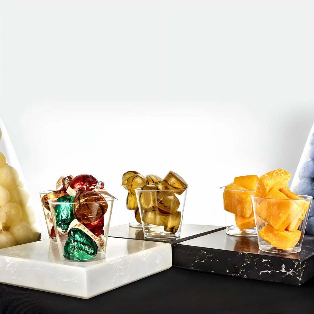 Clear Deluxe Plastic Tumbler - 1oz (Pack Of 50) - Premium Disposable Party Cups - Perfect For Events & CelebrationsPREMIUM QUALITY & DESIGN: Our Clear Deluxe Plastic Tumblers are made from durable, high-quality materials, ensuring your guests will be impressed with their stylish, crystal-clear appearance at any event or celebration.QPERFECT SIZE: Each 1oz tumbler is the ideal size for serving beverages and small appetizers, making them a versatile choice for a variety of occasions. With 50 tumblers included in each pack, this disposable party cup set provides the perfect amount of convenience for any gathering.WIDE RANGE OF USE: These premium disposable party cups are perfect for weddings, birthdays, baby showers, corporate events, or any outdoor celebration. Serve your favorite cocktails, mocktails, and smoothies, or even use them for elegant dessert presentations.EASY CLEAN-UP: Our Clear Deluxe Plastic Tumblers are recyclable, making them an environmentally responsible choice. Plus, their disposable nature means your cleanup after any event will be fast, easy, and hassle-free.ACE YOUR CELEBRATION: Create the ultimate party experience with our Clear Deluxe Plastic Tumbler - 1oz (Pack of 50) by ensuring a stylish, high-quality ambiance with a sophisticated touch. Don't miss out on impressing your guests and ace your celebration with these beautiful, premium disposable party cups.