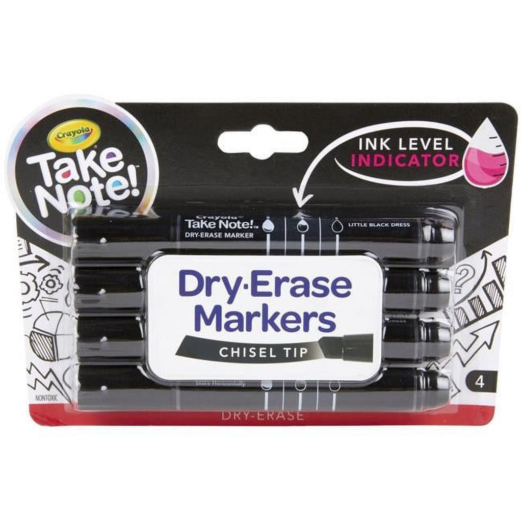 Crayola 2020851 Take Note Dry Erase Markers with Chisel Tip, Black - Pack of 4