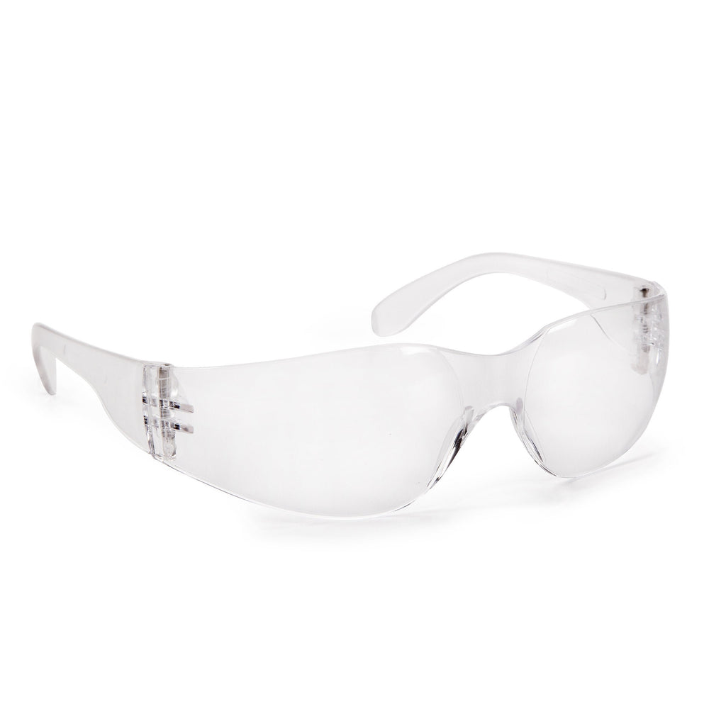 - 1 pair of clear plastic safety glasses per package
