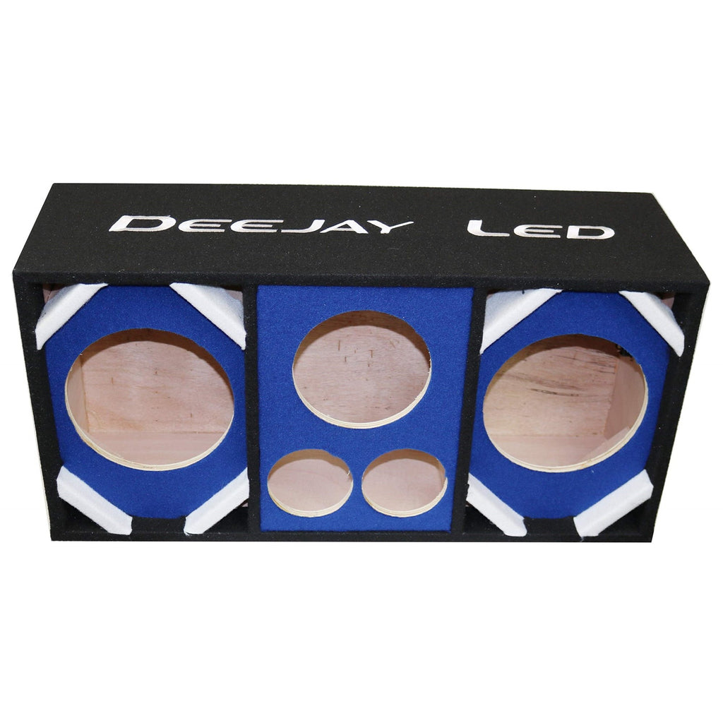 Two tweeter holes: 95mm diameter, One 145mm opening for horn, Includes the DEEJAY LED model 8 conductor quick release plug socket requires model TBH8PINMALE not included to use installed plug, or speakon 8 pin f plugs