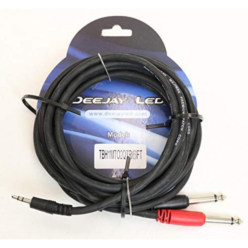 DEEJAY LED One 3.5mm Male Stereo to Two 1/4-in TS Phono Style Mono Male Plugs 6 Feet - TBH1MTO2QTR6FEET