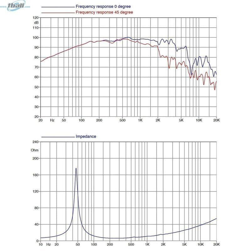 - TECHNICAL PARAMETERS || Nominal Impedance : 4 Ohm || Minimum Impedance : 4 Ohm || AES Power Handling (1) : 500 W || Maximum Power Handling (2) : 1000 W || Sensitivity (1W/1m) : 97 dB || Frequency Range : 45÷4000 Hz || Voice Coil Diameter : 77 mm (3 in) || Winding Material : Al || Former Material : Glass Fiber ||