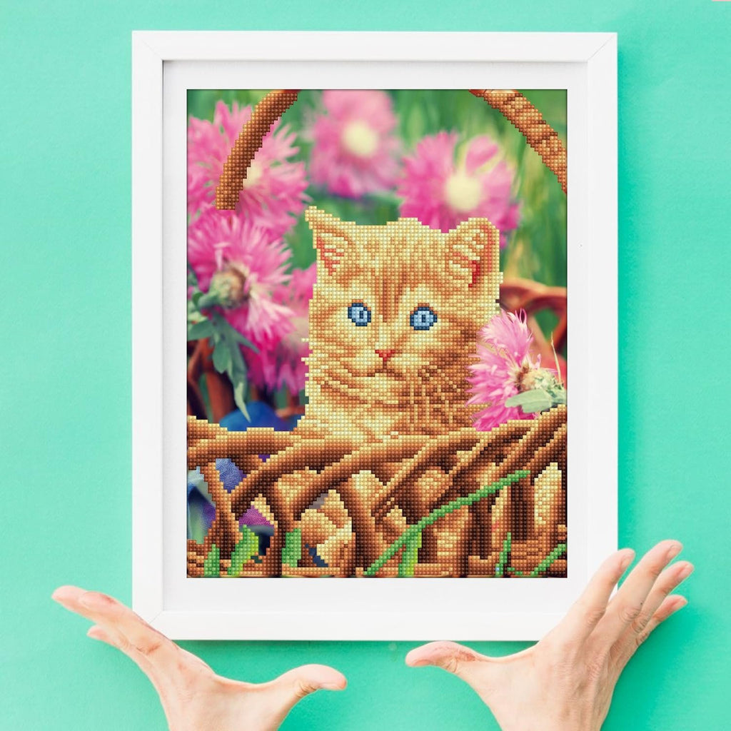 Diamond Art By Leisure Arts Kitten Basket, 11"X14", Intermediate Diamond Painting Kits For Adults, Art For Adults, Kit, Painting