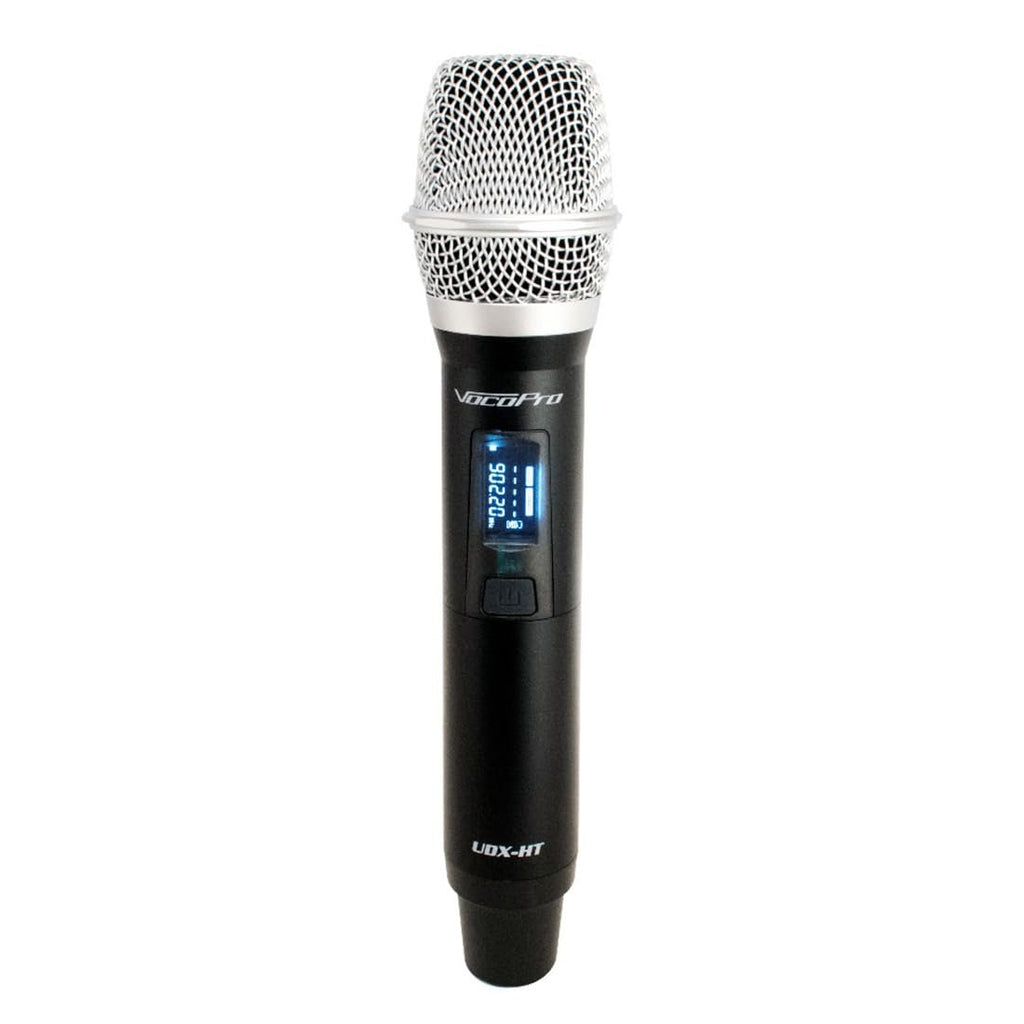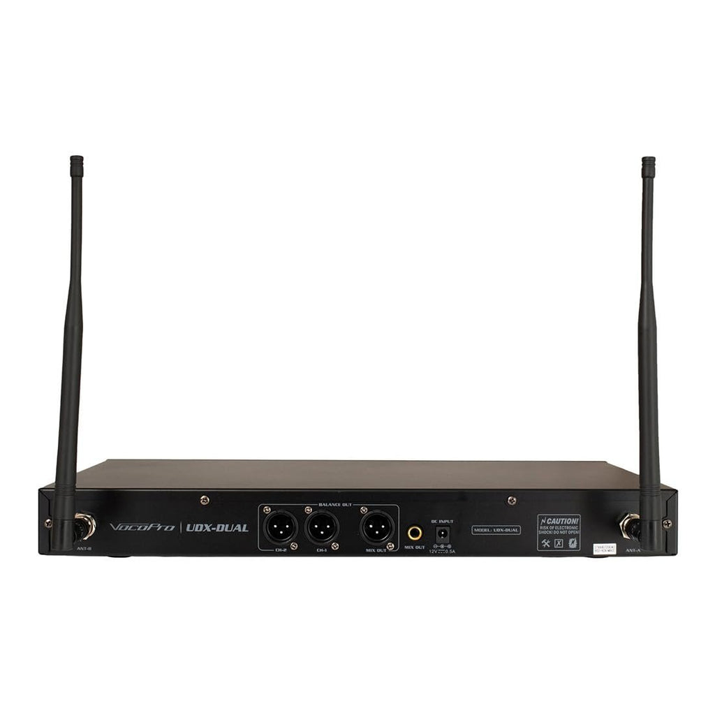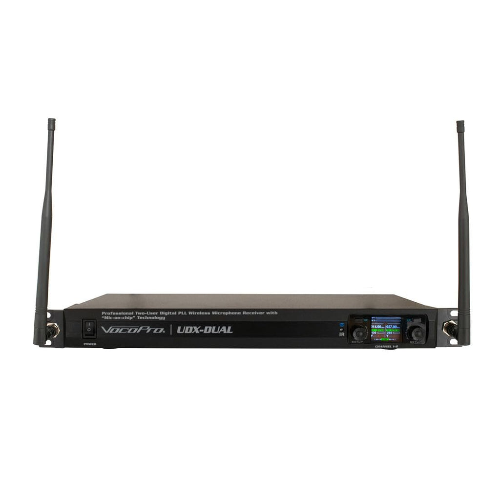 Digital UHF PLL Wireless System with Guitar Transmitter and Handheld Vocal MicrophoneThe receiver scans for clear channels; with many groups and hundreds of frequencies to choose fromReal time monitoring of microphones RF, audio, and battery levels directly from the receiver’s LED displayHandheld mic features a large dynamic capsule for maximum gain before feedback. Great sounding mic for singing and speech without picking up background noise.Handheld mic features durable all metal construction reduces the handling noise. Designed for years of use.Guitar transmitter features a 30° plug to fit into guitars with boat cup input jack