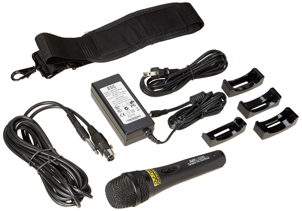 Play and control your iPod with the set of universal docking adapters. An additional microphone line-in allows you to add a CD player or plug in an instrument.