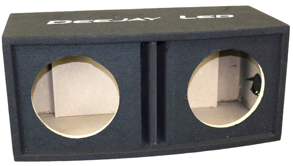 Double 10-in Center Port Vented Round Empty Car Bass Speaker Box 9-1/8-in Round Openings for two 10-in Woofers Rounded Front with Divergent Angles Carpet Stitched Logo DEEJAY LED 2X10ROUNDVENTEDDESIGNED PERFECTLY: Eminent Shear Quality To Stand up The Hardest Hitting Subwoofers, Wonderful, fit and finish. Rare carpentry strategies and arrangement, combined in manufacturing gives a strong mounting surface for fantastic sound qualityPERFECT MATCH: Built-in terminal with gold screw posts, It'll put a couple of vigor in your music. An intense ported box was laid out as a perfect match for the sub, so you can get an extraordinary performance, no matter what kind of music you preferEXTREME DEVELOPMENT: Arranged for perfect execution for utilize with blenders and control enhancers. The hard shell cabinet holds impacts that would turn lesser wood boxes into sawdust. Aluminum voice coil gives significant bass and acoustic powerSTURDY CONSTRUCTION: Black carpet covering protects the box and offers a neat appearance that blends in with most interiors, to make things even better, you can have this combo of powerful sound and at a price that'll help keep your budget in check5/8" MDF CONSTRUCTION: Stands up to life in your trunk. Its aircraft-grade black carpet covering protects the box and offers a neat appearance that blends in with most interiors, while the embroidered stitched logo enhances the cabinet's cool factor
