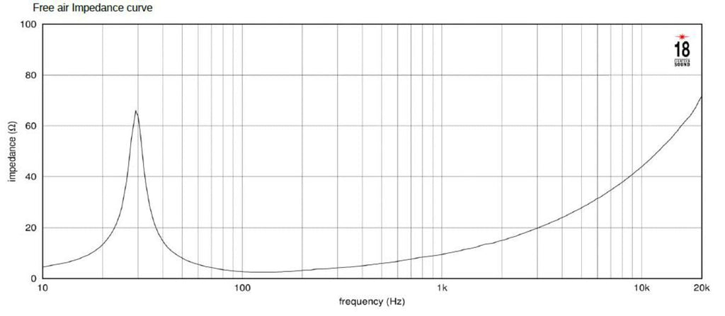 - "SPECIFICATIONS : || * Nominal Impedance: 2 Ohms || * Minimum Impedance: 1.9 Ohms || * Nominal Power Handling: 1800 W. || * Continuous Power Handling: 3600 W. || * Sensitivity: 395.0 dB. || * Frequency Range: 29 - 1000 Hz. || * Voice Coil Diameter: 135 mm (5.3 in). || * Winding Material: aluminum. || * Winding Depth: 45.0 mm (1.77 in). || * Magnetic Gap Depth: 18.0 mm (0.71 in) || "
