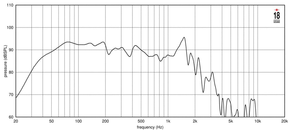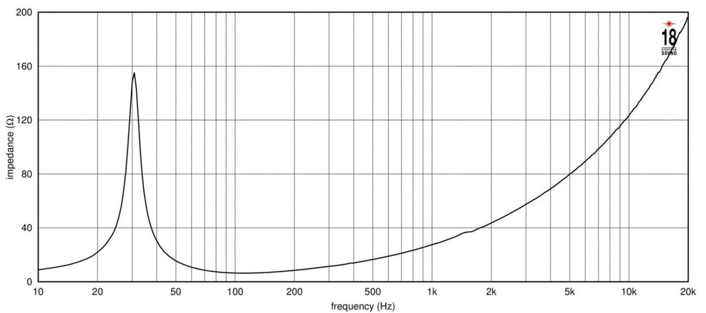 Eighteen Sound 18LW2600-8 LF Driver 18-inch Extended Low Frequency Loudspeaker 8-Ohms 1500 Watts RMS 3000 Watts Peak Designed for Use in Vented Enclosures"HIGHLIGHT : * 97 dB SPL 1W / 1m average sensitivity. || * 100 mm (4 in) Interleaved Sandwich Voice coil (ISV). || * 3000W program power handling. || * 60 mm peak to peak excursion. || * Ultra linear dual magnet motor design. || * Single Demodulating Ring (SDR) for lower distortion. || * Composite reinforced straight ribbed cone. || * Optimized high grade ferrite magnet assembly. || * Recommended for subwoofer usage in compact vented enclosures || ""SPECIFICATIONS || Nominal Impedance : 8 Ω || Minimum Impedance : 6.4 Ω || Nominal Power Handling1 : 1500 W || Continuous Power Handling2 : 3000 W || Sensitivity3 : 96.8 dB || Frequency Range : 30 - 800 Hz || Voice Coil Diameter : 100 mm (4.0 in) || Winding Material : Copper || ""MOUNTING AND SHIPPING INFO || Overall Diameter : 462 mm (18.19 in) || Bolt Circle Diameter : 440 mm (17.32 in) || Baffle Cutout Diameter : 416.0 mm (16.38 in) || Depth : 231 mm (9.09 in) || Flange and Gasket Thickness : 23 mm (0.93 in) || Net Weight : 16.1 kg (35.49 lb) || Shipping Weight : 16.5 kg (36.38 lb) || "The 18LW2600 is a 18-inch extended low frequency loudspeaker,especially designed for use in vented enclosures. The loudspeaker is designed to withstand high power levels without damage while providing clean and undistorted LF reproduction at a very high SPL. For optimum results we recommend amplifiers able to deliver 3000 Watt program power. The 18LW2600 features a unique motor featuring a high grade ferrite magnet assembly in a structure optimized for thermal and magnetic efficiency."Features include a large displacement suspension system which, in conjunction with a composite reinforced, straight ribbed cone, allows an ultra-linear piston action & provides full mechanical control across the entire working range. The 4-inch state-oftheart voice-coil utilizing Interleaved Sandwich Voice coil (ISV) technology, provides high levels of thermal stability and durability. The ISV technology achieves a balanced linear motor unit exerting an exceptionally high force factor. "