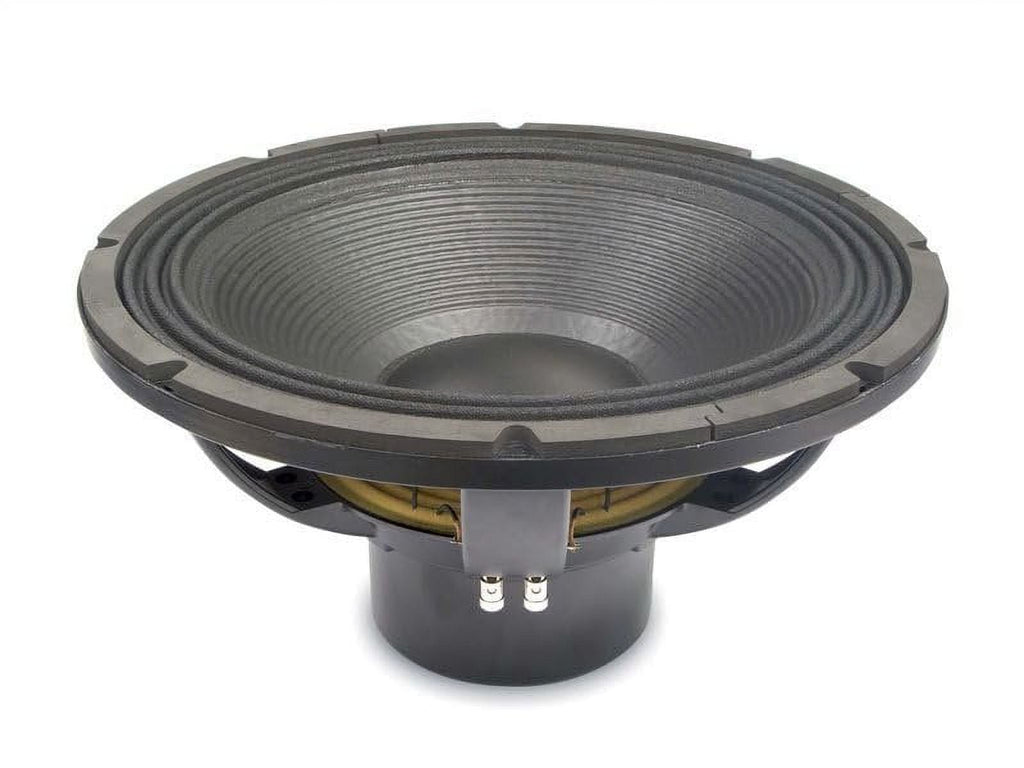 Eighteen Sound 18NLW9601-4 18-inch 4Ohm Woofer Extended Low Frequency Neodymium High Performance Transducer 1800 Watts RMS 3600 Watts PeakHIGHLIGHTS || 96 dB SPL 1W / 1m average sensitivity || * 135 mm (5.3 in) split winding four layers ISV aluminum voice coil || * 3600 W program power handling || * Carbon fiber reinforced cellulose cone || * Double Silicon Spider (DSS) for improved excursion control || * Aluminum demodulating ring (SDR) for lower distortion || * High force neodymium magnet assembly || * Weather protected cone and plates for outdoor usage ||"SPECIFICATIONS || Nominal Diameter : 462 mm ( in) Nominal Impedance : 4 Ω Minimum Impedance : 3.6 Ω Nominal Power Handling1 : 1800 W Continuous Power Handling2 : 3600 W Sensitivity3 : 96.0 dB Frequency Range : 30 - 2300 Hz Voice Coil Diameter : 135 mm (5.3 in) Winding Material : aluminum""MOUNTING AND SHIPPING INFO || Overall Diameter : 462 mm (18.19 in) || Bolt Circle Diameter : 440 mm (17.32 in) || Baffle Cutout Diameter : 416.0 mm ( in) || Depth : 236 mm (9.29 in) || Flange and Gasket Thickness : 26 mm (1.02 in) || Net Weight : 12.8 kg (28.22 lb) || Shipping Weight : 14.3 kg (31.53 lb) || Shipping Box : 482x482x257 mm (18.98x18.98x10.12 in) || "The 18NLW9601 is an extended low frequency 18 inch neodymium high performance transducer. It is the evolution of the industry standard 18NLW9600. The loudspeaker has been designed for use as a subwoofer component, in either a reflex, bandpass or horn loaded high SPL demanding applications. For optimum results recommended amplifier should be able to deliver 3600 Watt program power. 18NLW9601 being able to control the moving mass with high linearity.The state-of-the-art 5,3" diameter ISV copper clad aluminum wire CCAW voice coil shows a inside-outside split winding, four layers design, enabling the 18NLW9601 to handle up to 3600W program power. Bl force factor, as well as all other electro-dynamic parameters, are linear within the working range. The 18NLW9601 has been developed after intense FEA and fluidodynamics simulation and testing, focusing on dissipating the heat generated by the powerful voice coil.