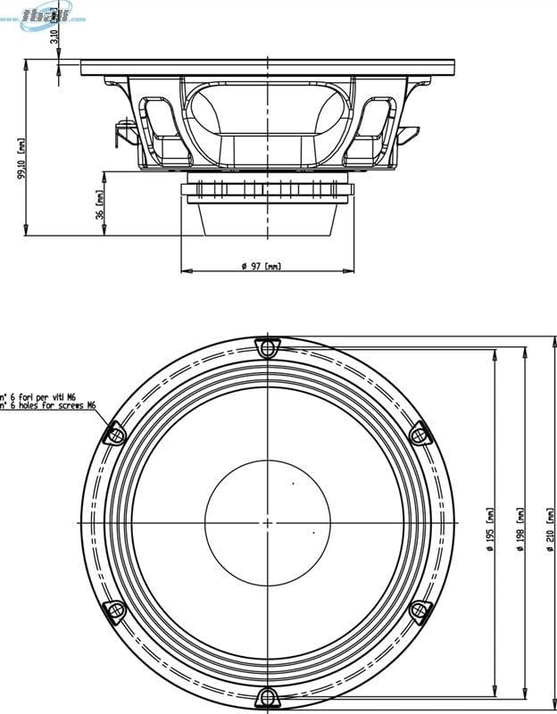 - "MOUNTING AND SHIPPING INFO || Overall Diameter :: 210 mm (8.27 in) || Bolt Circle Diameter :: 195 mm (7.68 in) || Baffle Cutout Diameter :: 186.0 mm (7.32 in) || Depth :: 99 mm (4 in) || Flange and Gasket Thickness :: 14 mm (0.55 in) || Net Weight :: 1.7 kg (3.75 lb) || Shipping Weight :: 2.0 kg (4.40 lb) || Shipping Box :: 235 x 235 x 150 mm ( 9.25 x 9.25 x 5.91 in )"