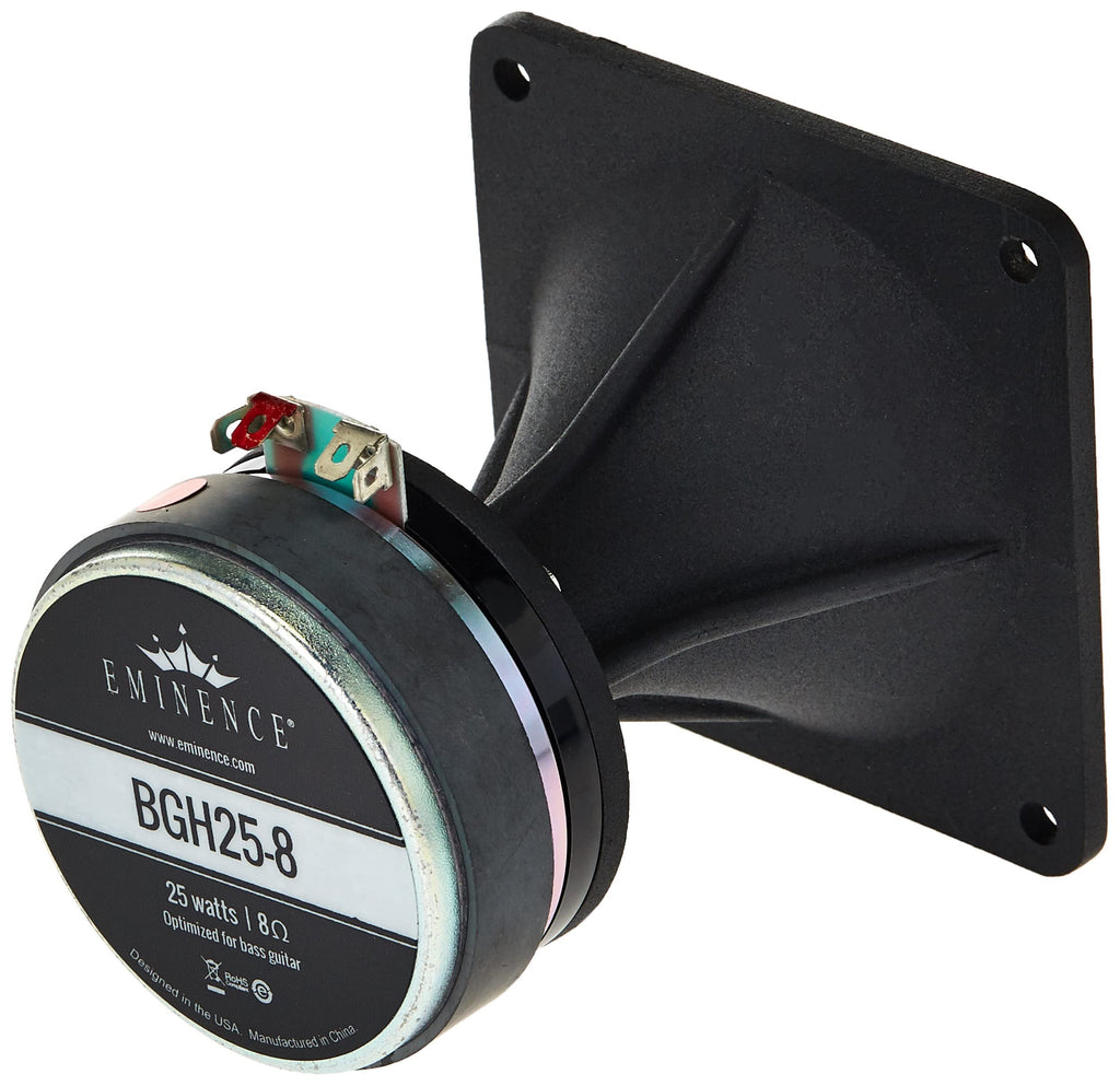 Eminence BGH258 Bass Cabinet Supertweeter, 25 Watts at 8 OhmsHas a 25 watt driver and die cast horn combinationOptimized specifically for bass guitar applicationsHandles a frequency range of 2.5 kHz - 20kHz