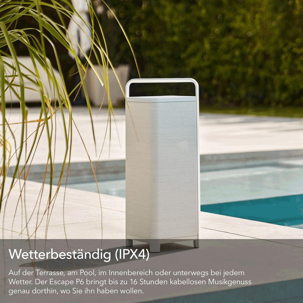 Escape P6AIRWHITE Portable Outdoor BT Speaker W Streaming Hi-Res Multi-Room Audio Streaming Audiophile Speakers Equipped with 6.5-inch Subwoofer - White