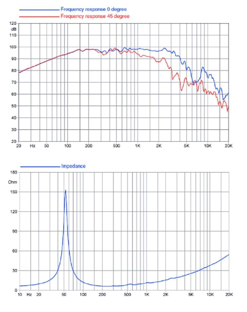 - "TECHNICAL PARAMETERS || Nominal Impedance : 8 Ohm || Minimum Impedance : 6.3 Ohm || AES Power Handling (1) : 600 W || Maximum Power Handling (2) : 1200 W || Sensitivity (1W/1m) : 98 dB || Frequency Range : 50÷4000 Hz || Voice Coil Diameter : 77 mm (3 in) || Winding Material : Al || Former Material : Glass Fiber || "