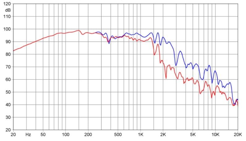 "THIELE AND SMALL PARAMETERS || Fs : 35 Hz || Re : 5 Ohm || Qes : 0.43 || Qms : 11.6 || Qts : 0.41 || Vas : 185.5 dm^3 (6.55 ft^3) || Sd : 1212 cm^2 (187.86 in^2) || Xmax (4) : 12.45 mm || Xdamage (5) : 23.1 mm || Mms : 228.6 g || Bl : 24.3 N/A || Le : 1.48 mH || Mmd : 180.9 g || Cms : 0.09 mm/N || Rms : 4.3 kg/s || Eta Zero : 1.81 % || EBP : 81 Hz || "