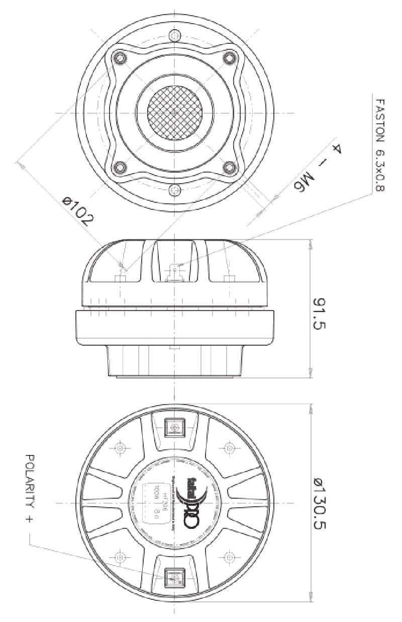- "NOMINAL SPECIFICATIONS || Throat Diameter : 50.8 mm (2 in) || Overall Diameter : 130.5 mm (5.14 in) || 90° Mounting Holes Diameter (4xM6) : 102 mm (4.02 in) || Depth : 91.5 mm (3.60 in) || Net Weight : 2.3 kg (5.1 lb) || Shipping Box (Single carton box) : 185 x 170 x 122 mm (7.3 x 6.7 x 4.8 in) || Shipping Weight : 2.6 kg (5.7 lb) || "