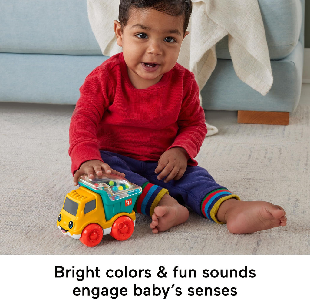 Fisher-Price Baby Toy Poppity Pop Dump Truck Push-Along Vehicle with Fine Motor Activities For Infants Ages 6+ Months