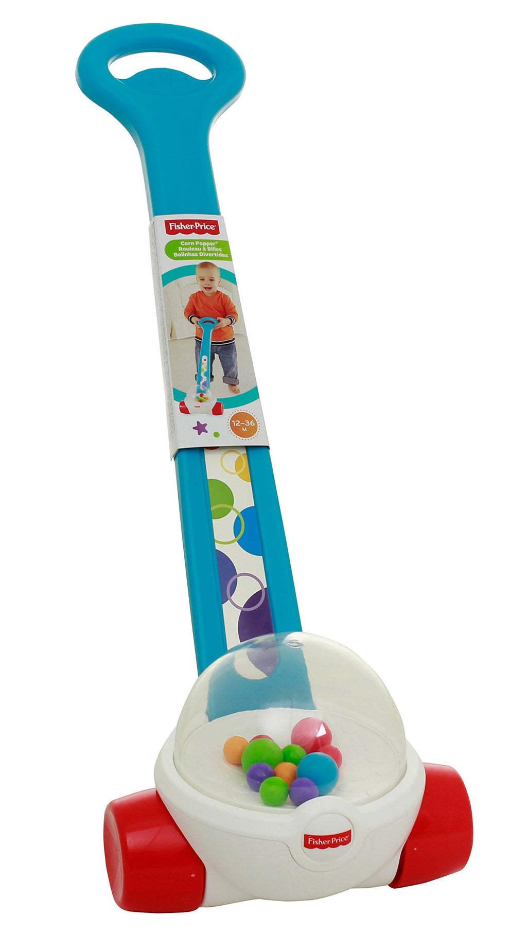 Fisher-Price Corn Popper Baby Toy, Blue, Toddler Push Toy with Ball-Popping Action for 1 Year Old and UpA new look for this classic, baby-favorite push toy!Exciting ball-popping sounds & actionWalking & pushing the Corn Popper along help strengthen gross motor skillsBaby’s actions make things happen – a great introduction to cause & effect!Bright colors & popping sounds help stimulate baby’s senses and are a delightful reward for baby