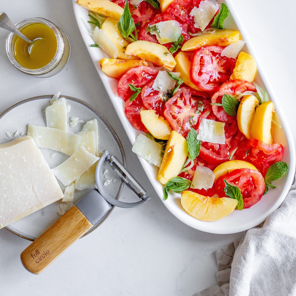 Full Circle Peel Good Collection Y Peeler – Bamboo and Stainless Steel Fruit and Vegetable Peeler – Removable Swivel Head - Kitchen Tool for Squash, Sweet Potatoes and MoreSTRAIGHT VEGETABLE PEELER: Perfect for carrots, zucchini and eggplant, our razor sharp Straight Peeler makes dinner prep a breeze, powering through peeling your fruits and veggies. With a wide arch shape that helps prevent peels from getting stuck.COMFORT GRIP: The essential utensil’s lightweight bamboo handle has an ergonomic shape and grip, so your wrist and hand stay comfortable however many pies, stews or sweet treats are on the menu.STYLE AND FUNCTION: A stainless steel swivel peeler head conforms to the contours of all your favorite vegetables, and a built in eye remover is perfect for peeling potatoes when it’s time for fries.EASY CARE DESIGN: The removable peeler head is dishwasher safe for a quick refresh but we do recommend hand washing both the blade and the bamboo brush handle in warm, soapy water to keep it sharp and in best condition.EARTH FRIENDLY MATERIALS: Made from Bamboo, Stainless Steel and Recycled Plastic; Full Circle is a certified B-Corp company, plastic neutral and ship carbon neutral.