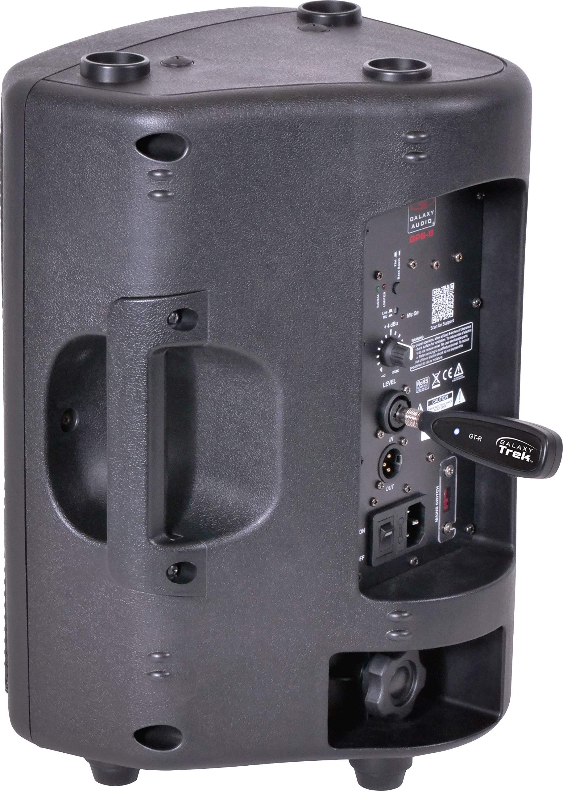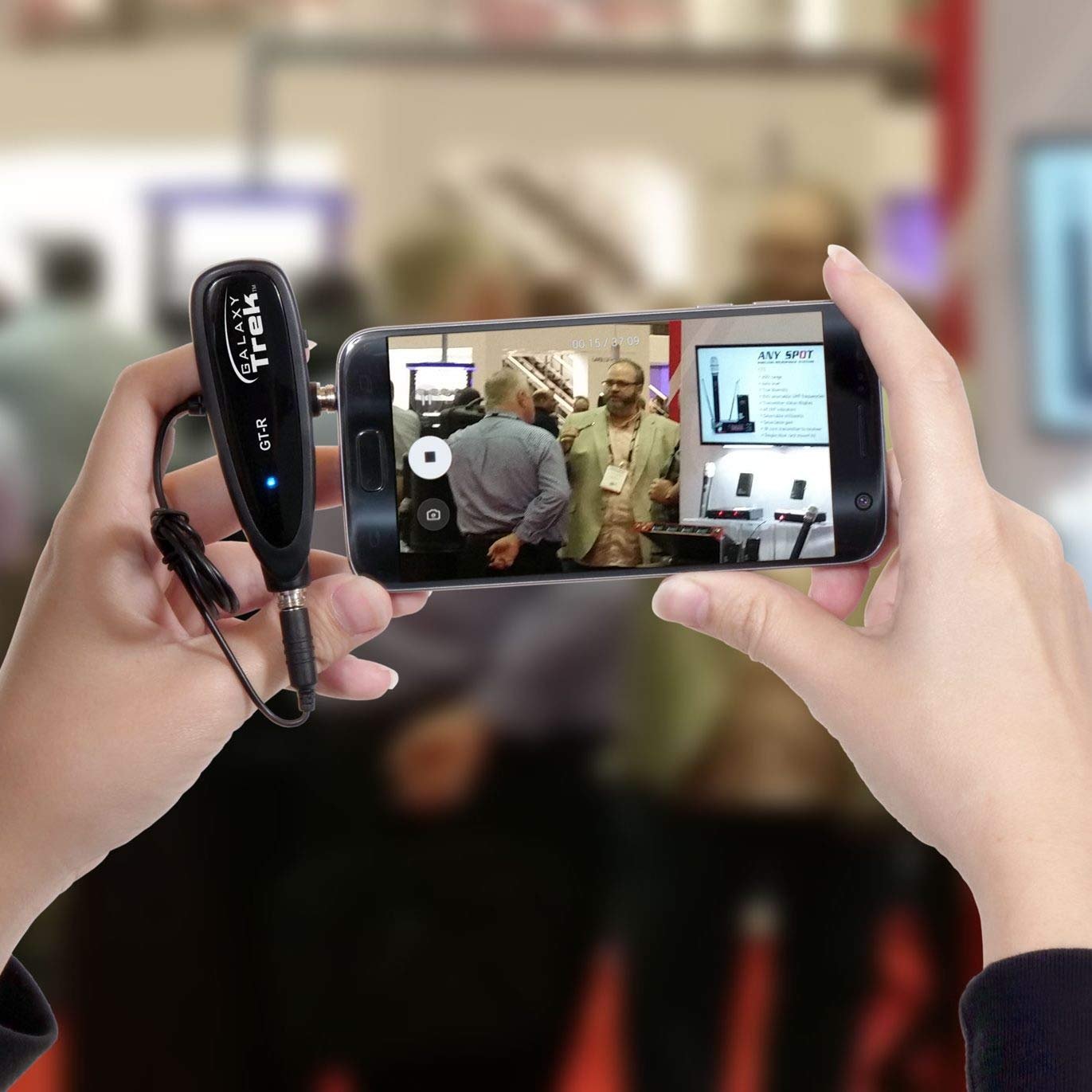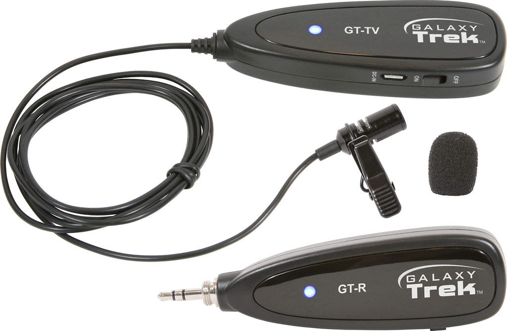 Galaxy Audio GalaxyTrek GT-V Portable Wireless Vocal Lavalier Microphone System for Smart Devices and Most Active SpeakersWireless Lavalier Vocal Microphone for Smart Devices and Most Active Speakers.Easy setup, user-friendly, compact battery powered wireless microphone headset system.Transmits quality audio seamlessly to the receiver, which simply plugs into your PA system, speaker, computer or smartphone.Powered by USB rechargeable long lasting internal lithium batteries boasting 6 hours battery life per charge.A 50 ft. operating range allows for maximum mobility while staying connected.Includes adapter cables for Apple and Android devices.Great for teachers, YouTubers, public speakers, office professionals, and more…