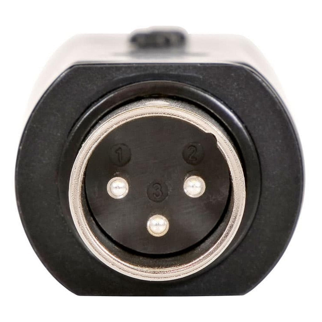 - * Input Connector: Micro USB Charging Input * Output Connector: XLR/M * Controls: Power, PAD Switch, Bluetooth Pair/Stereo-Link Button * Indicators: Charging LED, Stereo-Link/Pair LED * Sensitivity: -80dBm < +/-0.1 % BER * Signal to Noise: >75dB * Total Harmonic Distortion: <0.1% * Operating Range: Under Typical Conditions over 300 feet (100 m)
