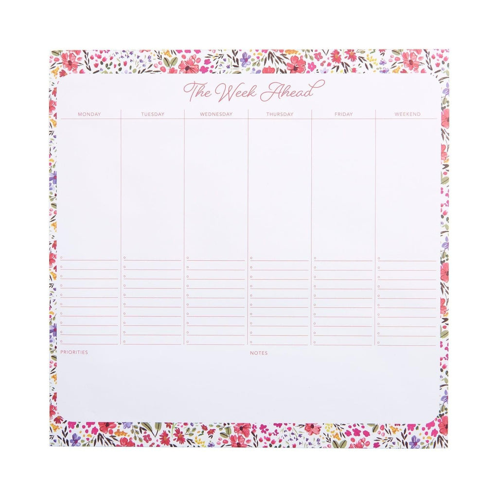 Bright Floral Smart Deck Calendar includes The Week Ahead text at the top of this 12 x 12-inch tear off notepad. Includes space for the week of the day, plus adequate space for notes and appointments for each day- including a bulleted section as well. Includes blank space for priorities and notes too. A pretty calendar to doll up your desk space. Smart Deck measures 12 x 12 inches 125 ct tear off sheets Read More